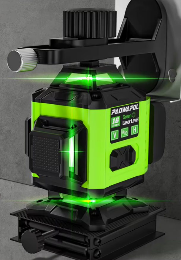 Модель PAOWAFOL 4D является надежным представителем 16-линейных нивелиров и формируют четыре полных круговых луча: две оси по горизонтали и две по вертикали. Этот функционал позволяет полностью покрыть рабочее пространство для выравнивания напольного покрытия, вертикальных и верхних поверхностей, а также с возможностью маркировки всех углов помещения, что значительно ускоряет процесс ремонта. Уровень работает на высококонтрастном зеленом свете, обеспечивая хорошую видимость в условиях повышенной освещенности. Заявленная точность обычно находится в пределах +-0.2мм/метр, что делает его пригодным для широкого спектра строительных задач. Уровень комплектуется беспроводным контроллером, позволяющим менять режимы на расстоянии, в дополнение, а также прочным кейсом и дополнительными аксессуарами (кронштейн, подъемная платформа).