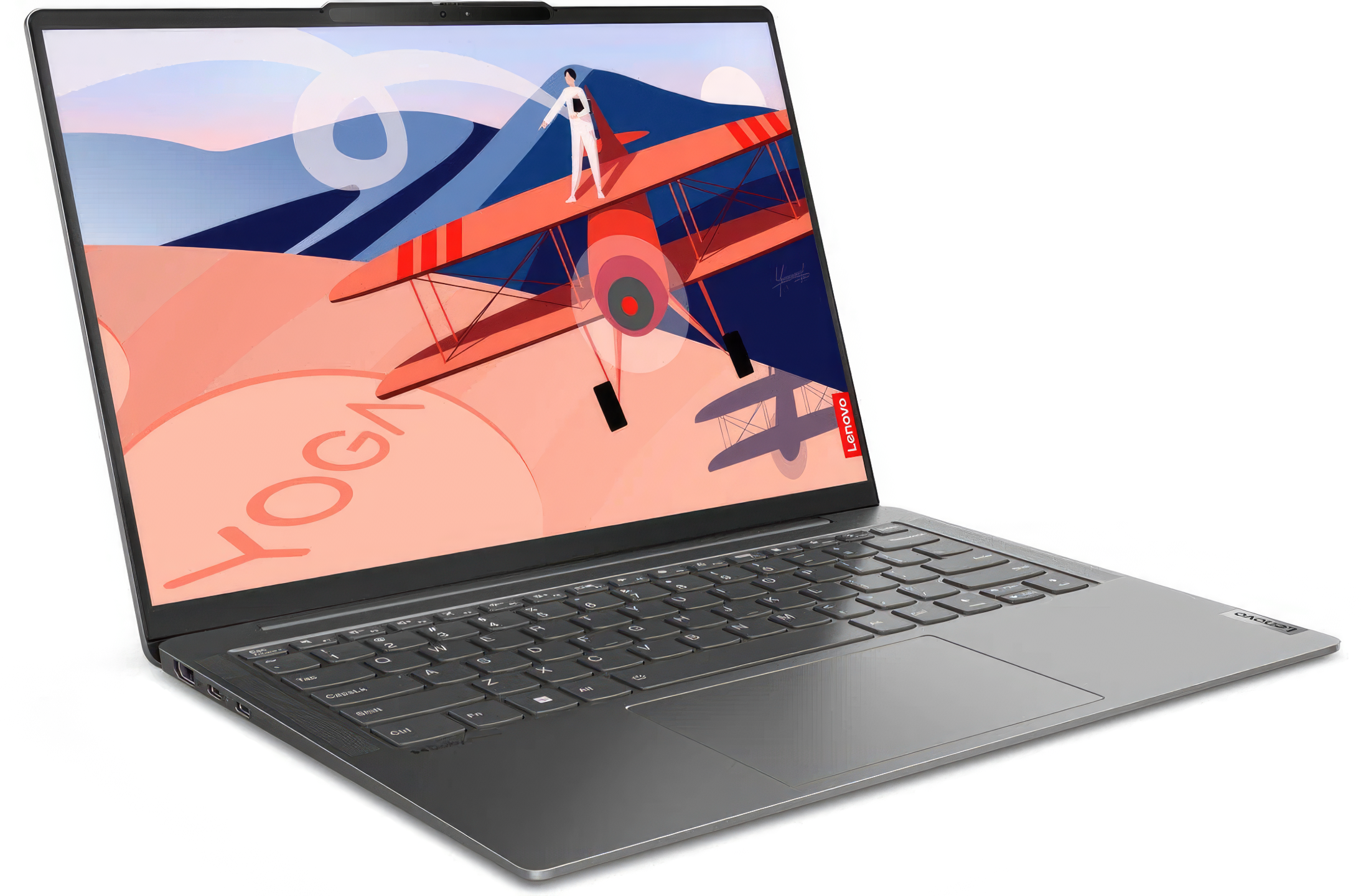В той же премиальной ценовой категории, что и ASUS ZenBook, располагается ещё одна интересная модель — Lenovo Yoga Slim 6 Gen 8 за ₽135 000. Это пример ультрабука в духе «всё лучшее и сразу, даже в ущерб автономности».