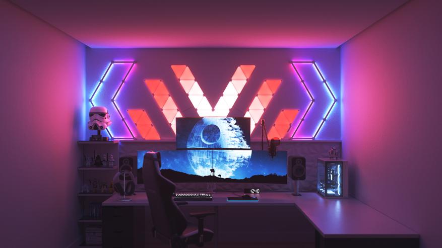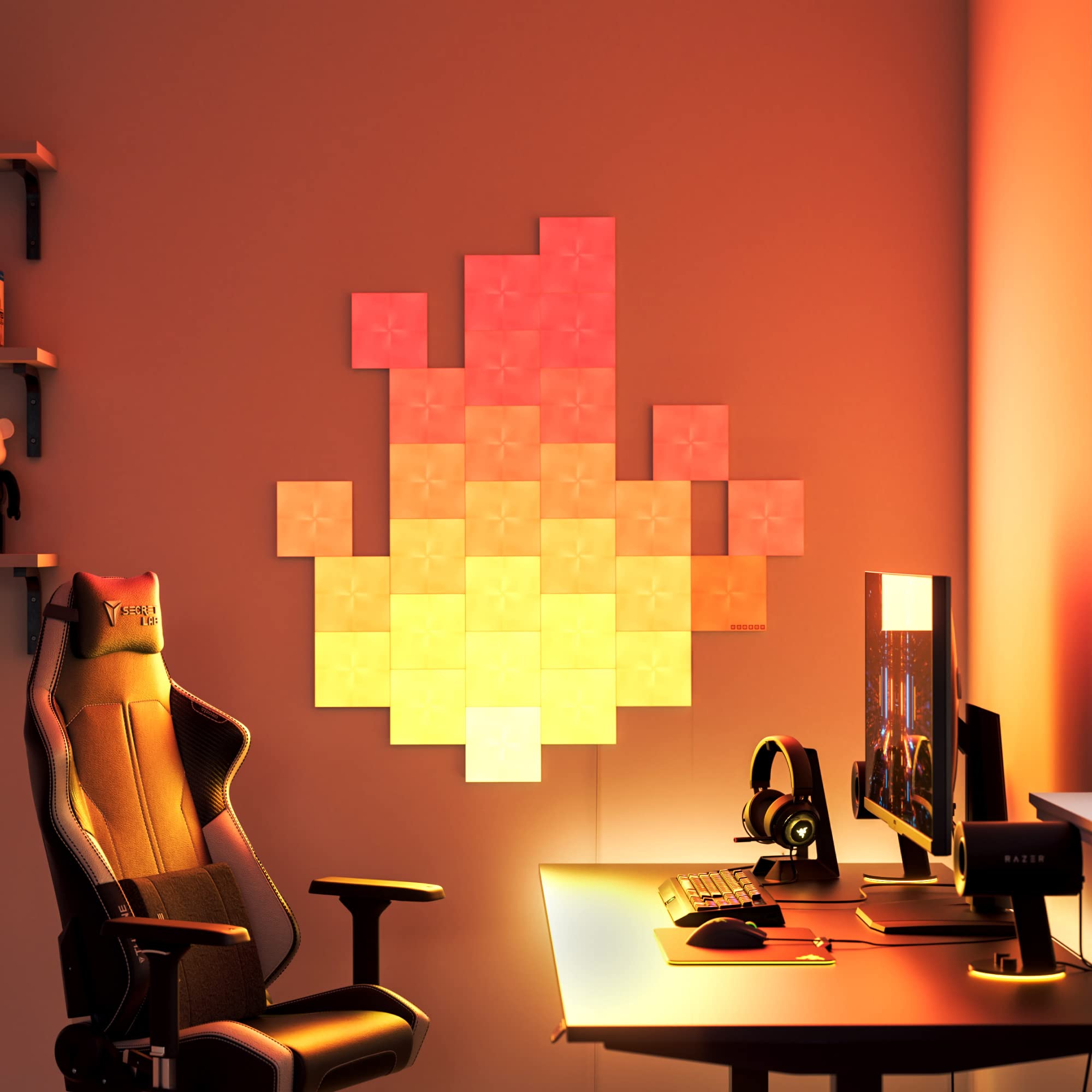 Далее мы переходим в другую ценовую категорию, где нас встречают решения от крупных и проверенных временем брендов. В частности, Nanoleaf выпускает свои светильники уже более 10 лет. Модель Nanoleaf Canvas обрела популярность благодаря своей квадратной «пиксельной» форме. Некоторые пользователи reddit из этих панелей собирают целые стены.