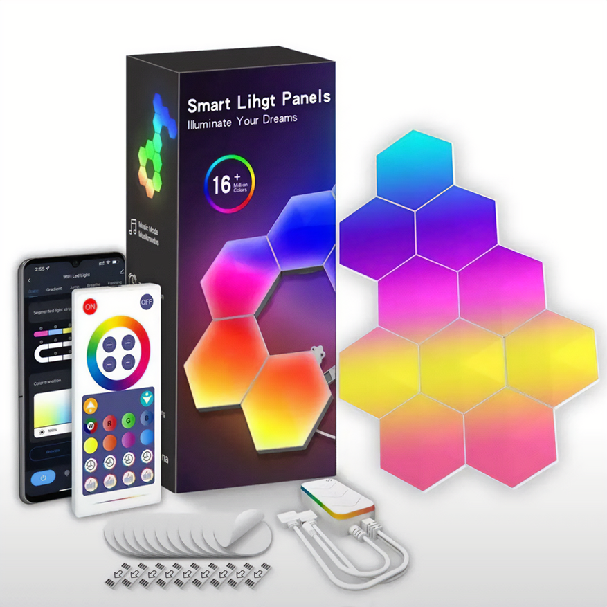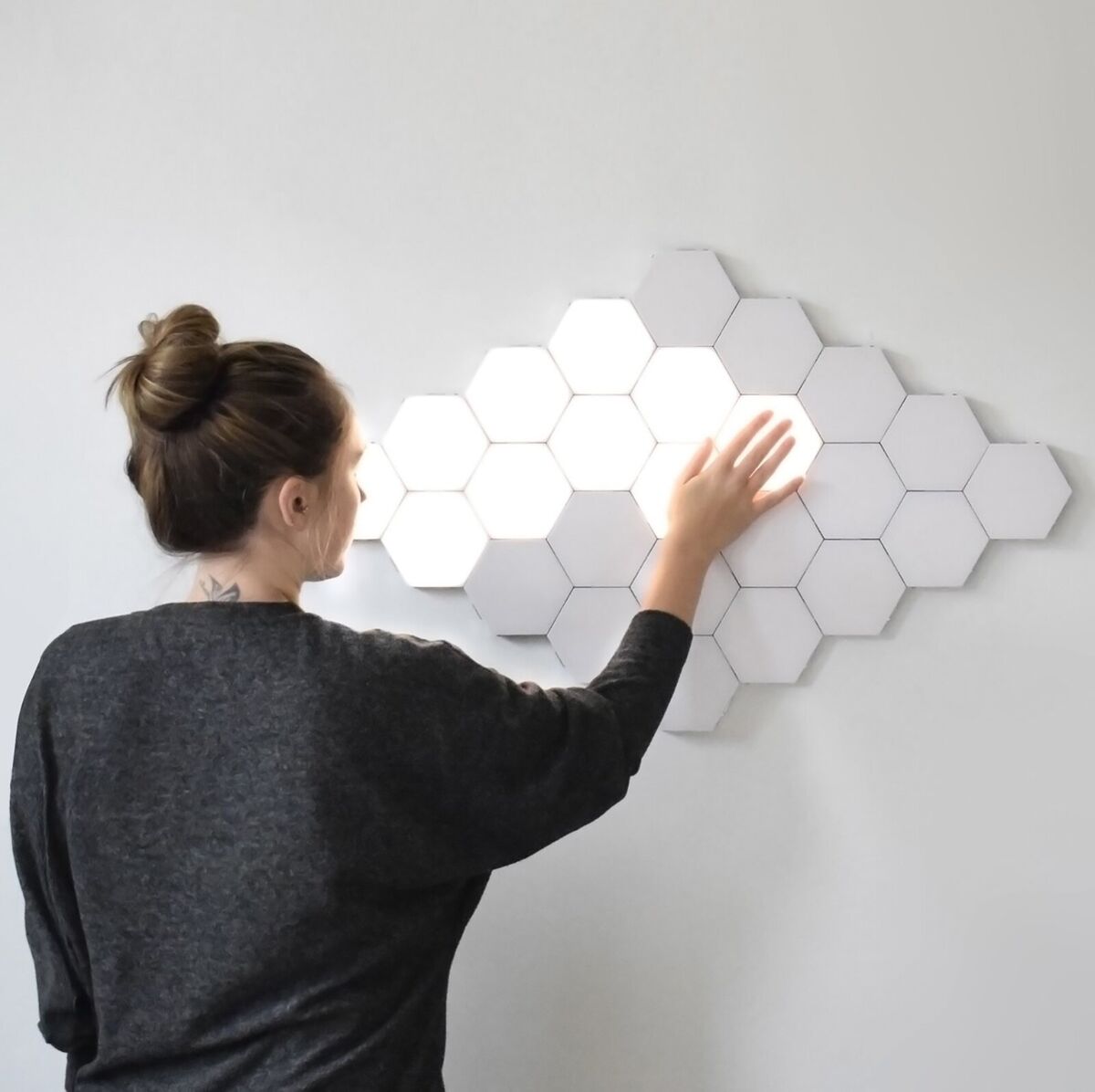 Благодаря встроенным микрофонам световые панели от Everso могут синхронизироваться с воспроизводимой в комнате музыкой, при необходимости можно настроить автоотключение по таймеру. Размеры модулей — 88 мм (большая диагональ) x 78 мм (малая диагональ) x 18 мм. Данный вариант предлагается в комплектах по 8 / 10 / 12 модулей в упаковке.