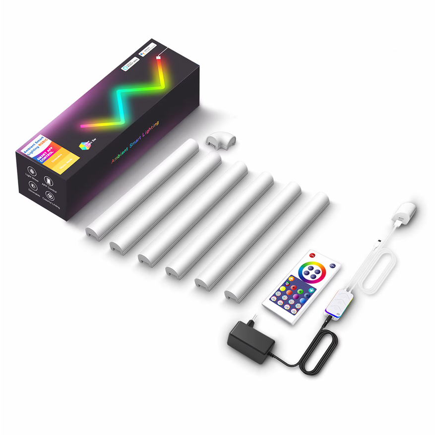 Открывает подборку сравнительно бюджетный, а потому популярный модульный RGB-светильник от Everso. Настраивать подсветку можно как с помощью комплектного пульта, так и в мобильном приложении. В последнем случае пользователю доступно около 200 режимов работы динамической подсветки.