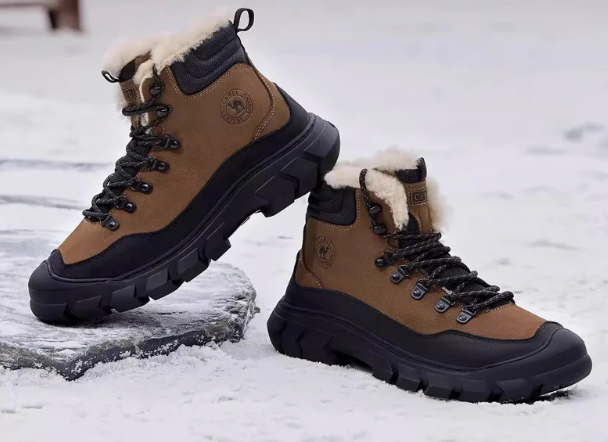 Подкладка из плюша мягко обволакивает ногу и сохраняет тепло, а подошва из резины и ЭВА обеспечивает амортизацию и надёжное сцепление с поверхностью. Дополнительная защита носка и плотная шнуровка повышают устойчивость и долговечность пары.
