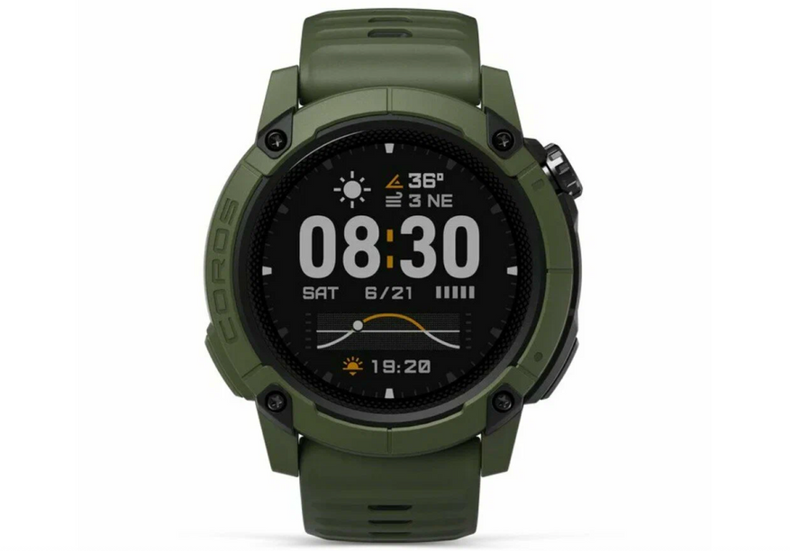 Корпус армированный полимер с алюминиевым кольцом. Не боится ни дождя, ни падений, ни песка. Экран MIP 1.3 дюйма, который не слепнет на солнце и не теряет контраст в тени. Можно смотреть на него с утра до вечера, и он всегда остаётся читаемым, будто подстраивается под ландшафт.