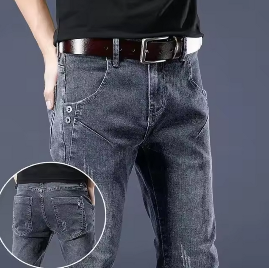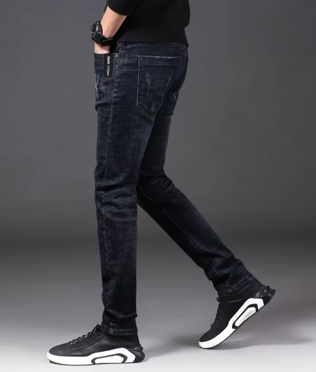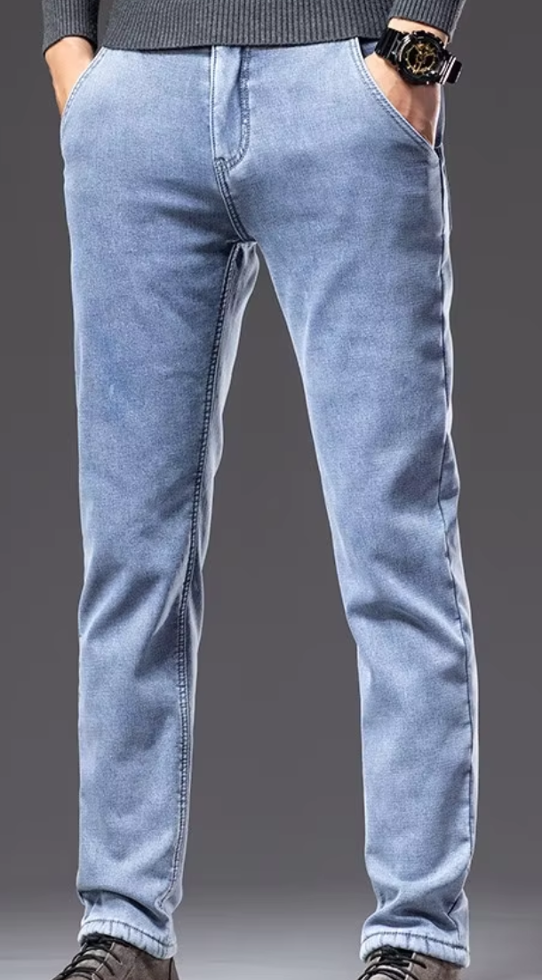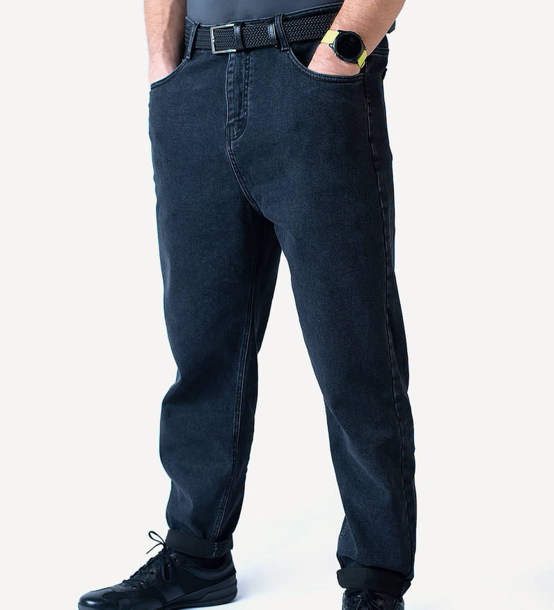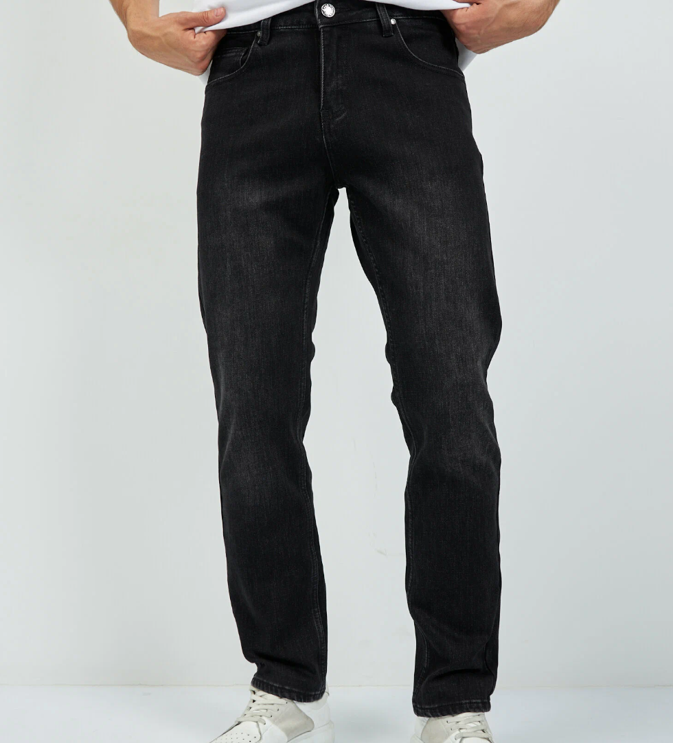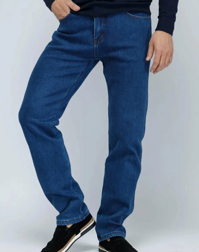 Далее пройдемся по более бюджетным вариантам и первым из них будут мужские джинсы с начесом. Эта модель брюки-карандаш, она имеет более молодежный дизайн и стиль. Внутренняя сторона джинс покрыта утеплителем похожим на мех с коротким ворсом. Мягкие и приятные к телу джинсы согреют вас в холодную погоду и обеспечат комфортные движения, так как ткань хорошо тянется. За счет размера можно использовать эту модель как свободные, зауженные к низу джинсы или как облегающие. И в том и в том случае вам будет комфортно в них.