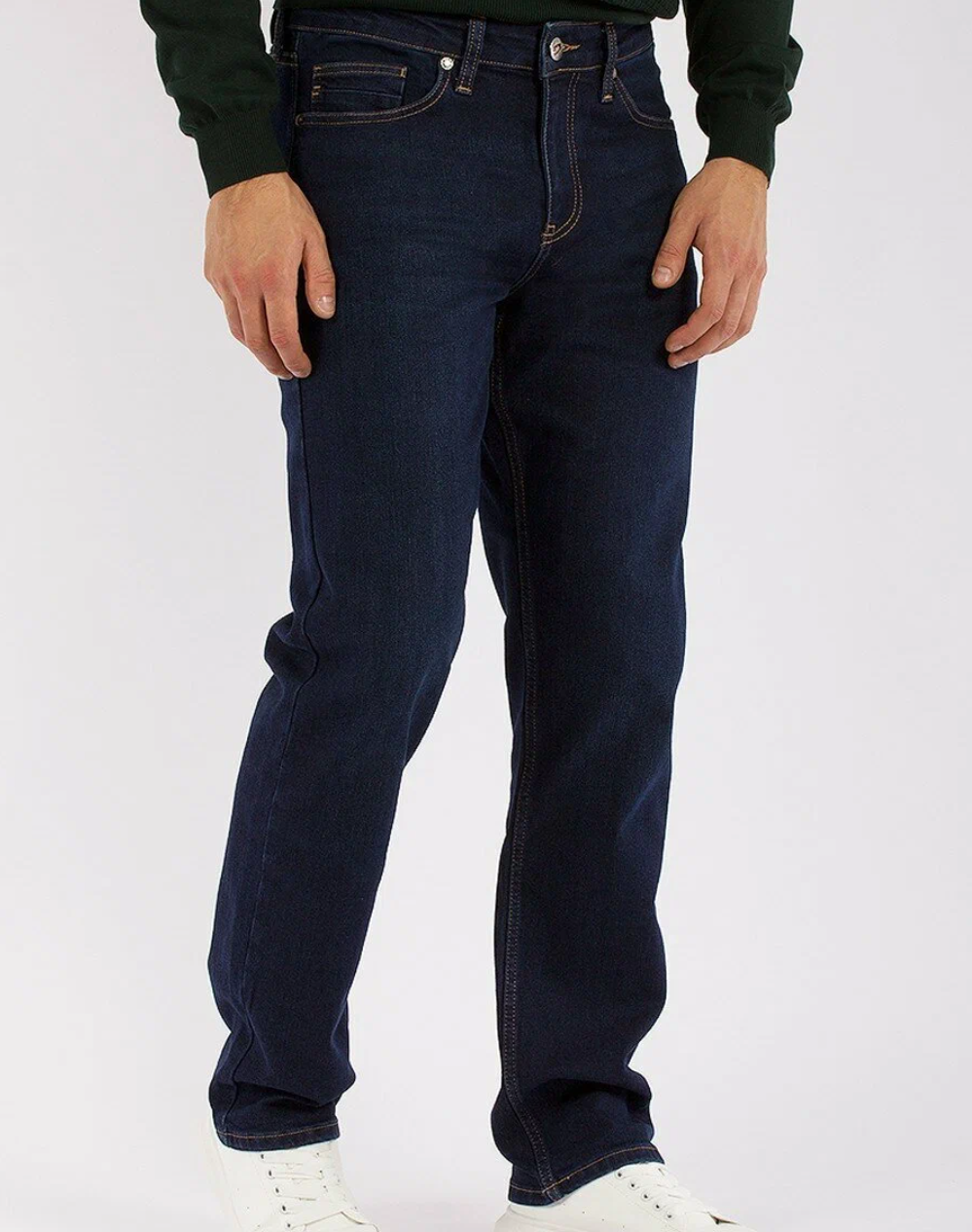 На первой позиции расположились теплые хлопковые джинсы от турецкого производителя Dairos. Стильная модель с небольшим количеством утеплителя — байка, подойдет для прохладной погоды и небольших морозов. На сильные холода эта модель не подойдет, но на первые морозы вполне сгодится. Производитель предлагает только одну расцветку (темно-синий) и размерный ряд с 48 по 54.