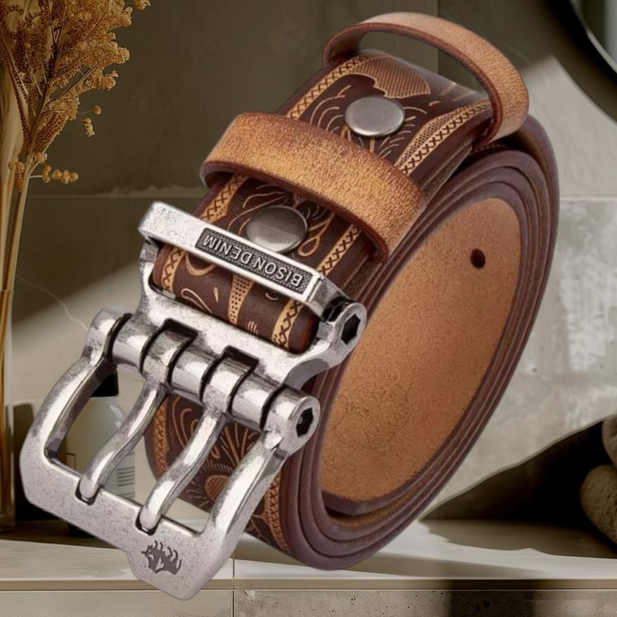 Выполнен в стиле ретро и предназначен для повседневного использования. Изготовлен из натуральной кожи буйвола с мягкой и эластичной структурой. Ширина ремня составляет 3,8 см, а длина доступна в вариантах от 110 до 130 см. Пряжка с размерами 5,2x7 см выполнена из прочного материала с закругленными краями, что обеспечивает удобство в носке.