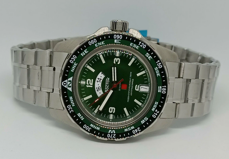 Есть тут и полезные мелочи. Односторонний безель — помогает засечь время, полезно не только для дайвинга, но и в жизни. Люминесцентные стрелки и метки — в темноте время видно без проблем. Отображение даты — удобное окно на «3 часах».