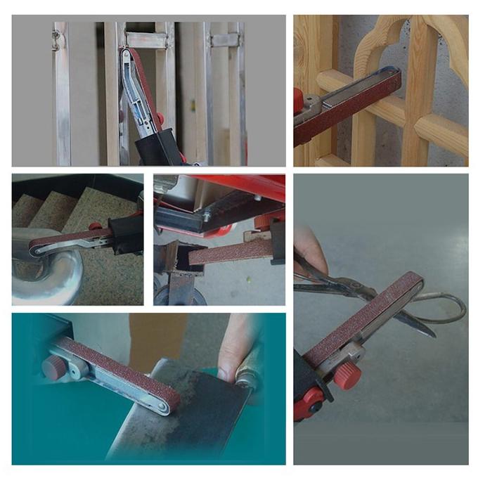 В дополнение идут 5 наждачных лент с разной абразивностью (80, 120, 150, 180 и 240), которые крепятся на 4х вращающихся валиках.