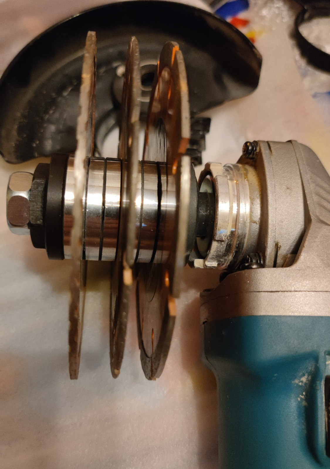 С помощью прижимных гаек можно установить на УШМ до 4х дисков одновременно и выполнять резы ровных штроб в стенах для последующей укладки туда проводов.