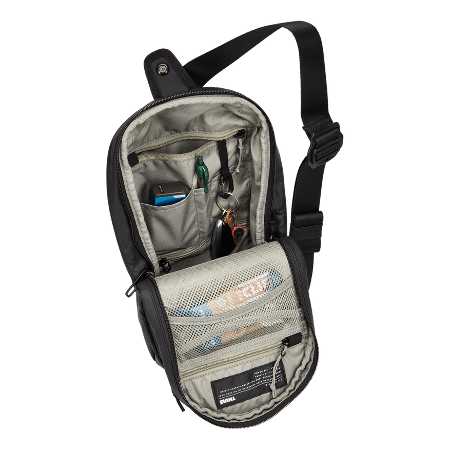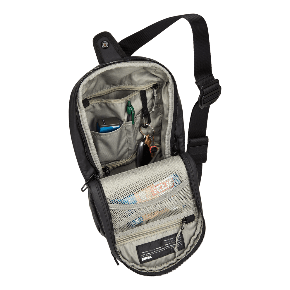 Далее рассмотрим надежный слинг-рюкзак от известного шведского бренда Thule, созданный с заботой об окружающей среде из переработанных материалов с сертификацией bluesign. Объем 8 литров оптимален для повседневного использования, а продуманная организация пространства включает несколько внутренних карманов с RFID-защитой и отделение для небольшого планшета.