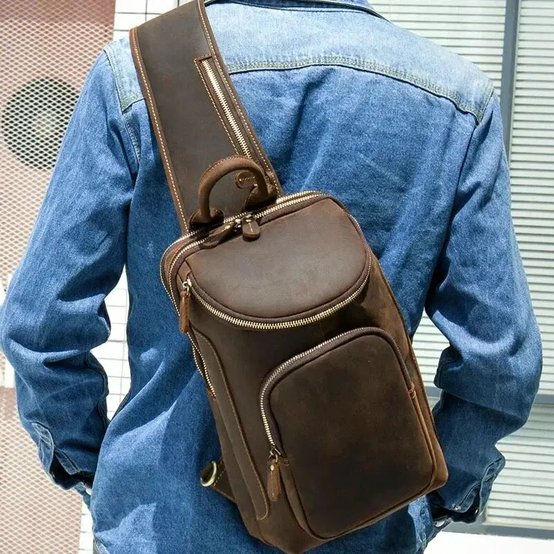 Далее идет популярный вариант для любителей сумок из натуральной кожи. Слинг-рюкзак Luufan — это стильное и практичное решение для повседневного использования в городе. Модель отличается продуманной эргономикой и вместительностью: при в меру компактных габаритах 34x24 см сумка имеет регулируемую глубину до 16 см. Конструкция включает 7 (!) отделений на молниях и 2 дополнительных внутренних кармана размером 25x17 см и 17x16.5 см.