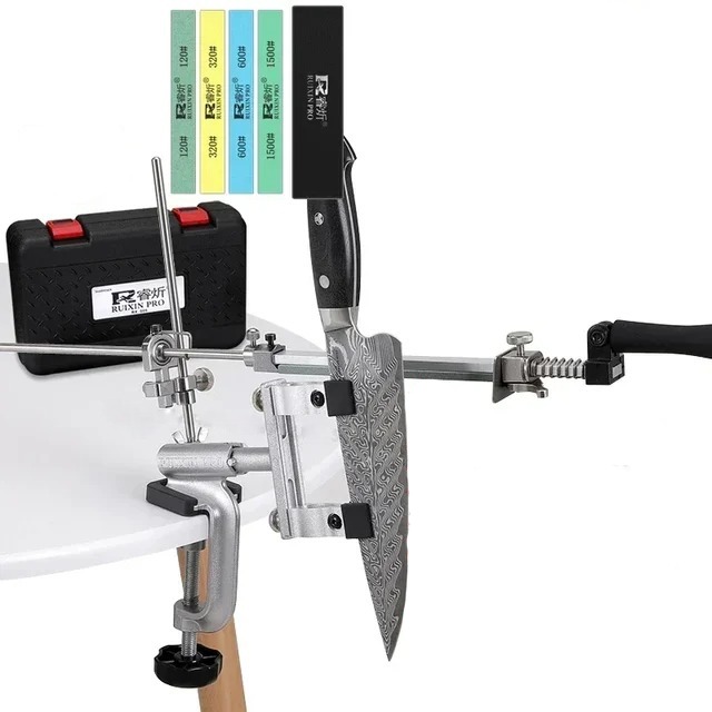 Точилка продается как отдельно, так и в пластиковом кейсе с различными наборами точильных камней.