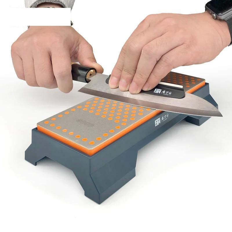 Стильная новинка для механической заточки ножей, которая состоит из металлического корпуса с эргономичным дизайном и магнитной платформы для хранения и регулирования угла заточки.