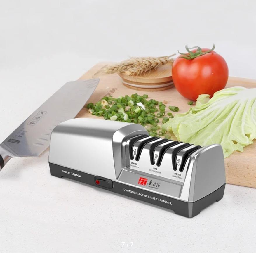 Мощный мотор обеспечивает равномерную скорость, а конструкция позволяет затачивать не только кухонные ножи, но и другие инструменты. Корпус компактный, с продуманной эргономикой, есть защита от перегрева.