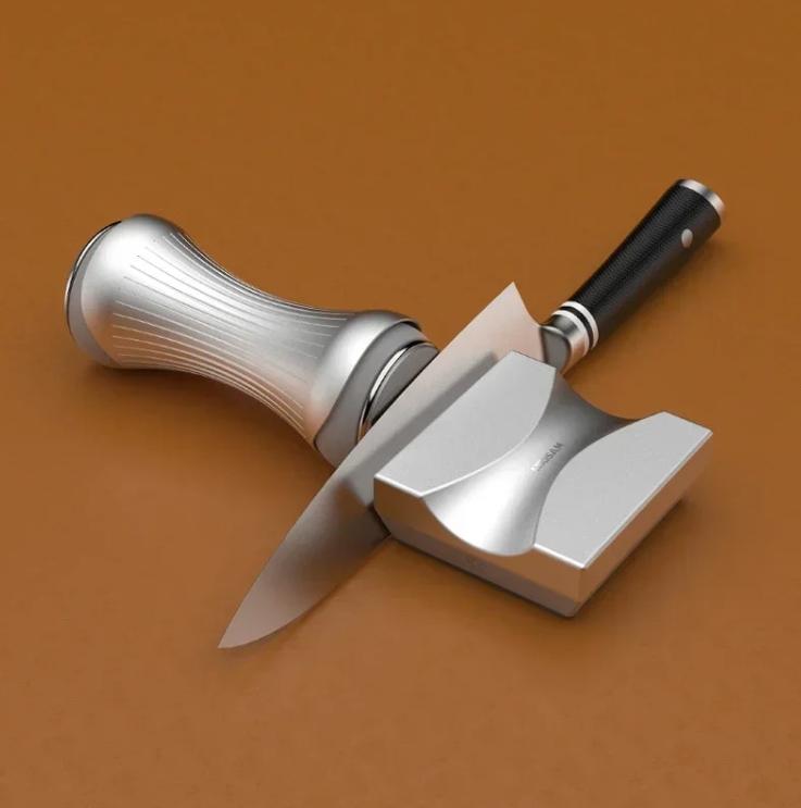 Точилка представляет собой классическую систему с фиксированным углом и гибкой регулировкой. Основной материал — алюминиевый сплав, что обеспечивает легкость и прочность. Особенность — держатель ножа, который можно настраивать под размер лезвия, и возможность поворота на 360° для удобства работы с обеих сторон.