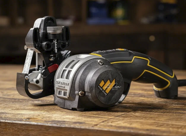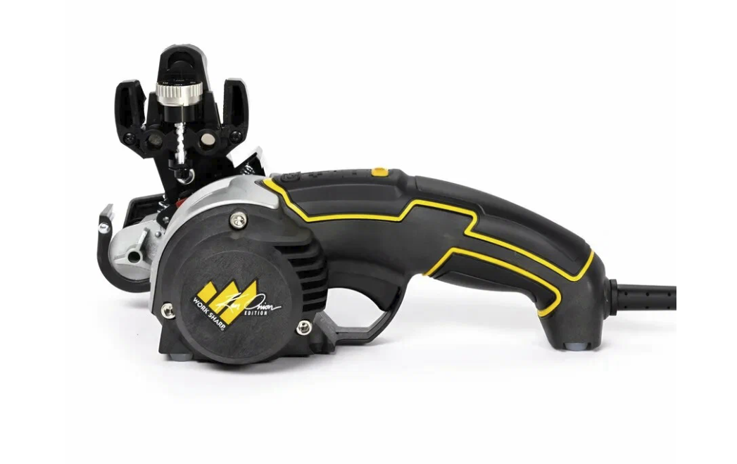Это полноценная рабочая станция для тех, кто хочет держать свои ножи и инструмент в идеальной форме без походов к мастеру. Она справляется с любыми задачами: кухонные ножи, топоры, садовые ножницы, лопаты, крючки, ножницы и даже зубчатые лезвия.