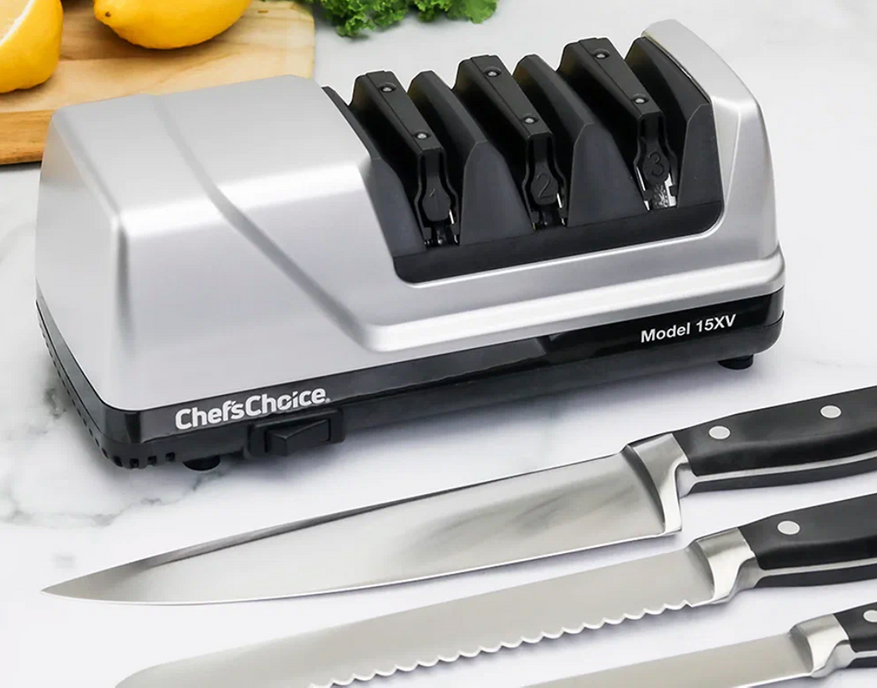 Chef's Choice Trizor XV одинаково хорошо справляется с гладкими и серрейторными ножами, с двусторонней и односторонней заточкой. Идеально подходит для «конверсии» стандартных кухонных ножей в острые, как у японских поваров под 15°. Просто вставил лезвие, провёл несколько раз и нож снова скользит по продуктам без усилий.