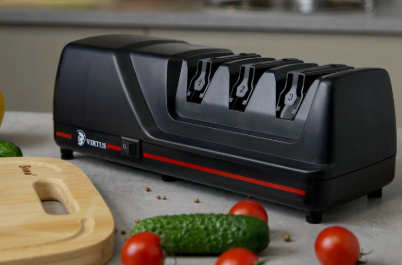 Virtus VS-120 подходит для любых ножей: кухонных, керамических, складных, охотничьих и даже серрейторных. Прочный корпус, резиновые ножки и лаконичный дизайн делают её надёжной и удобной в использовании.