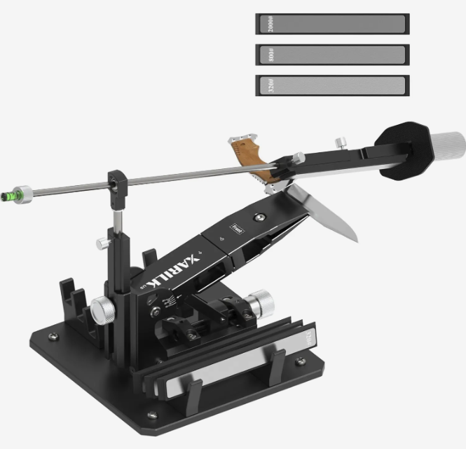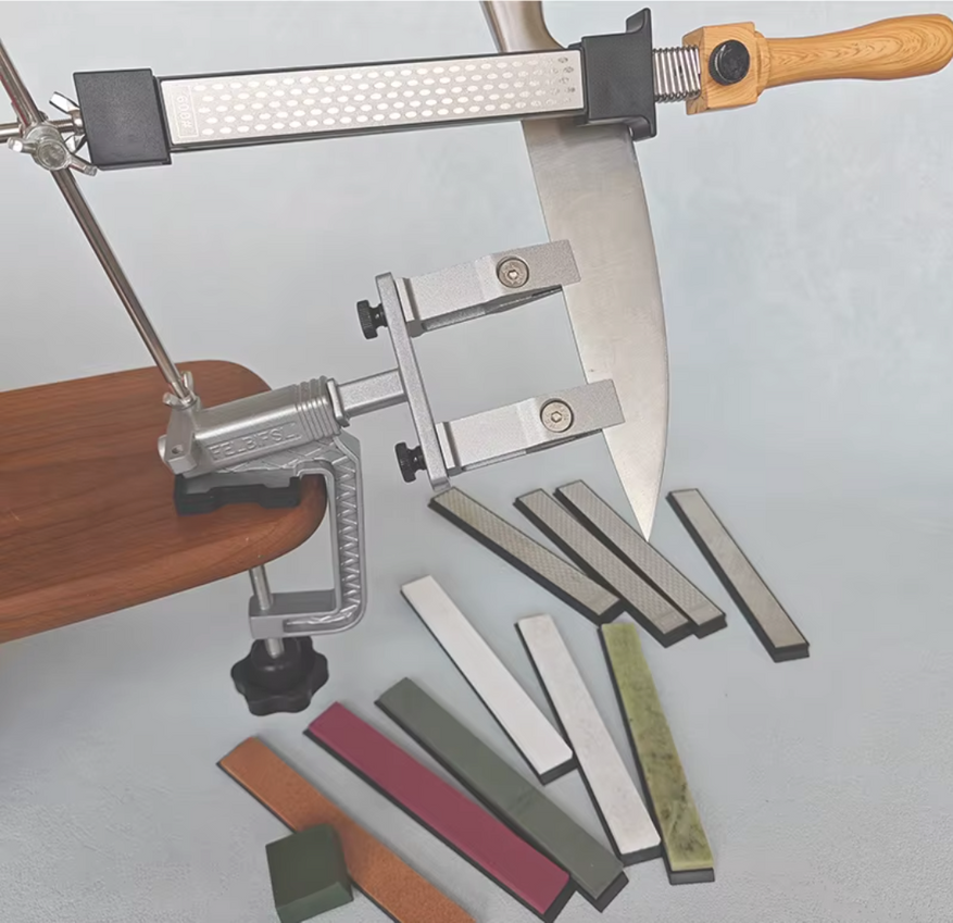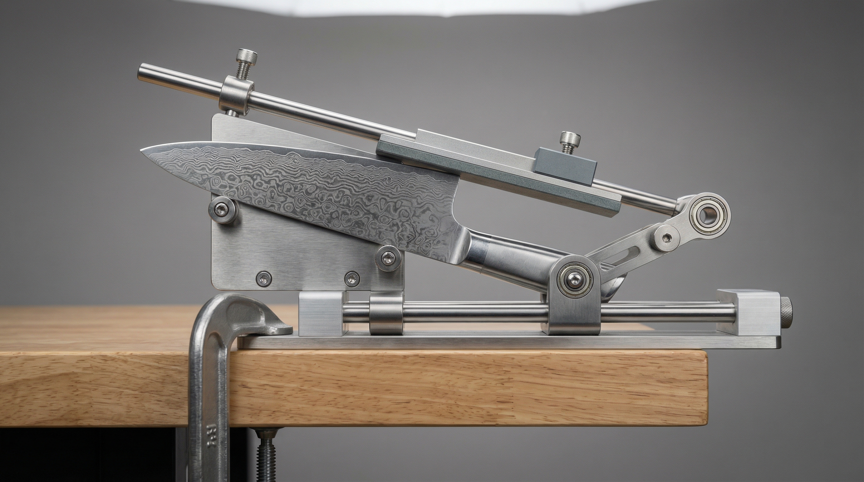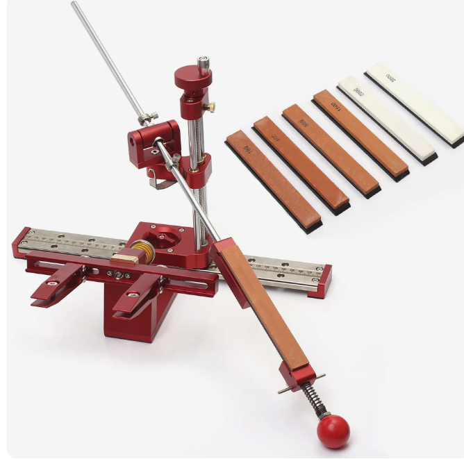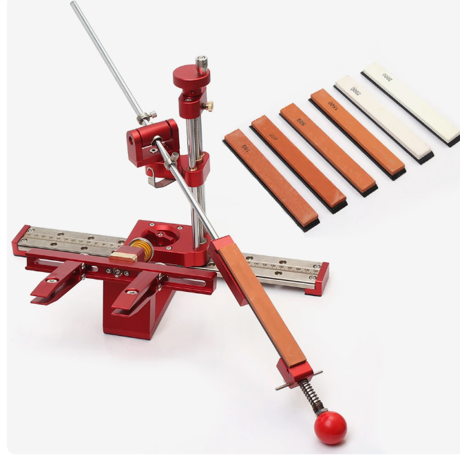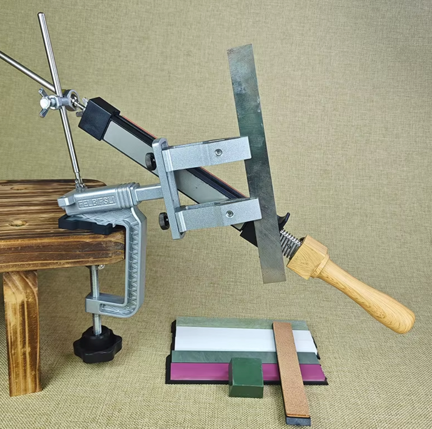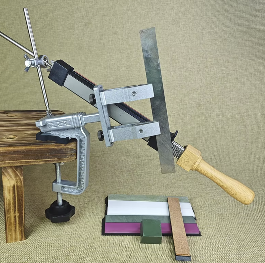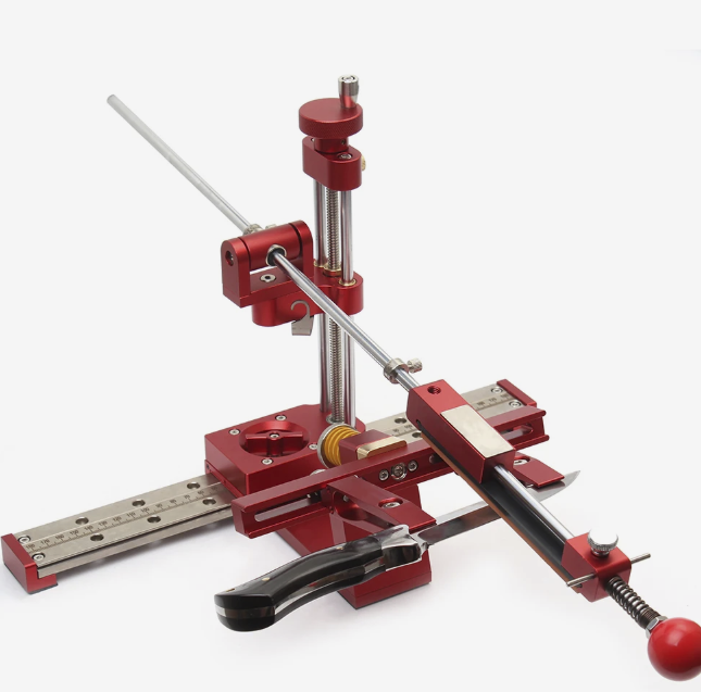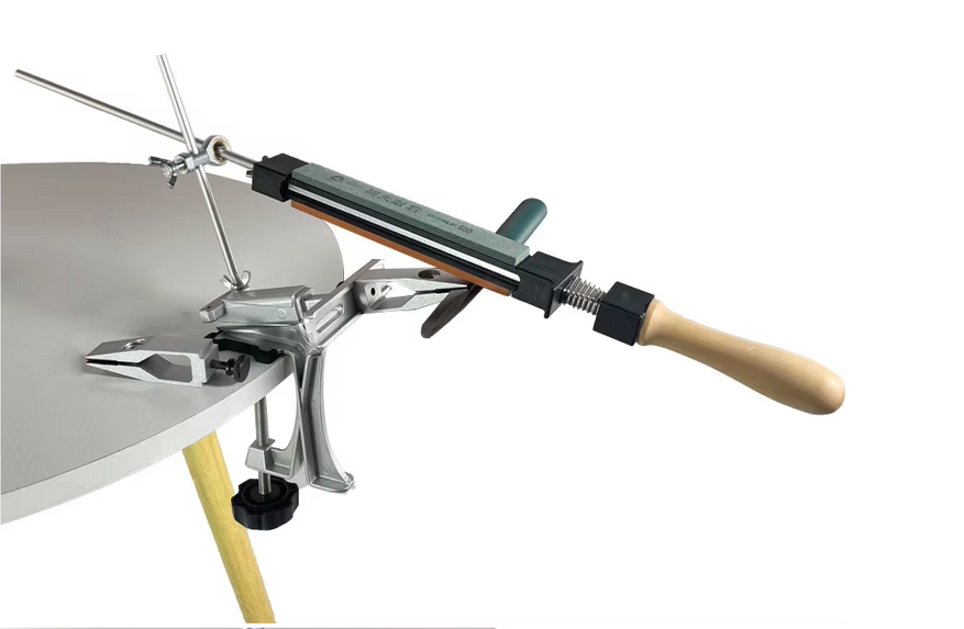 Система поддерживает быструю смену камней, жёсткую фиксацию угла и полный цикл заточки от грубой правки до чистового финиша. Это стационарный инструмент для контролируемой и воспроизводимой заточки в домашних условиях.