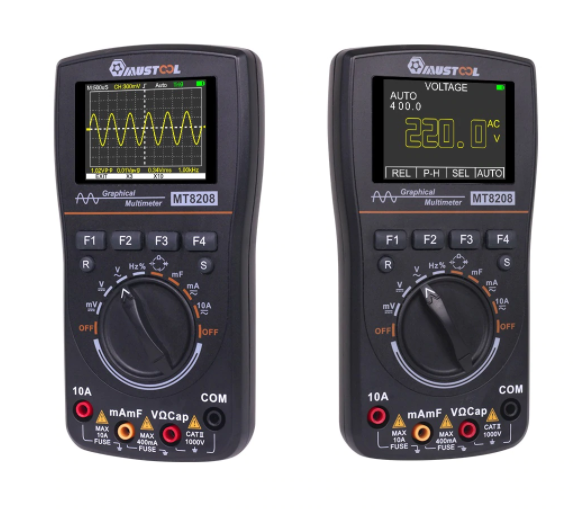Еще один весьма полезный вид приборов — это компактные комбинированные мультиметры типа «все-в-одном». Есть интересные модели от MUSTOOL — модель MT8028 с графическим дисплеем и встроенным осциллографом. Есть и «обратные модели» — осциллограф Hantek 2C42 со встроенным мультиметром. Если вам интересны качественные мультиметры (в том числе с черным контрастным EBTN экраном) — то вот интересная статья по выбору таких моделей.