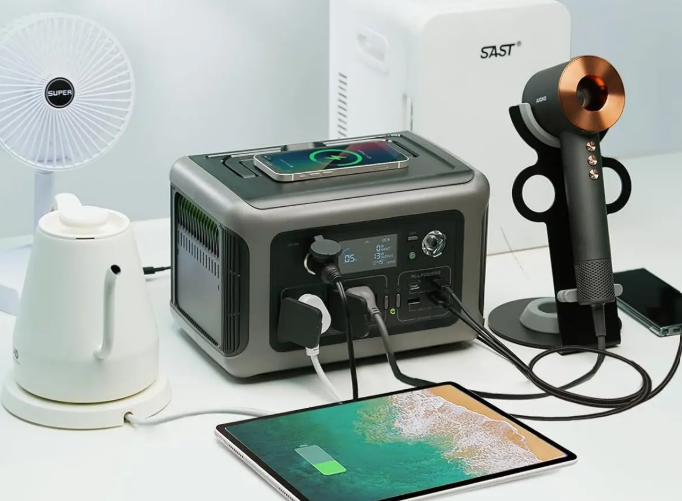 ALLPOWERS R600 это самое доступное решение сегодняшней подборки. Портативная станция базируется на LiFePO4 аккумуляторах и выдерживает более 3500 циклов до заметного снижения емкости. Поддерживаемая мощность на AC розетке до 600W, что позволяет подключать большинство бытовых устройств. Емкость 299Wh, что не очень много, но и цена — ниже некуда. Если подключить ноутбук, роутер и настольную лампу, то заряда хватит на несколько часов. Станцию можно использовать как бесперебойник (переключение менее 10 миллисекунд), а также заряжать от нее смартфоны, планшеты и прочую электронику. Для смартфонов предусмотрена беспроводная зарядка, что очень удобно. При необходимости можно подключить и более требовательные потребители, вроде фена или электрочайника, но при условии, что они тянут меньше 600W. Пользователю доступно: пара обычных AC розеток, автомобильный разъем (прикуриватель), парочка USB-C с мощностью 100W и парочка USB-A разъемов. Есть удобное приложение на смартфон для контроля и мониторинга. Важно, что сама станция умеет быстро восполнять заряд, от 0 до 100% она заряжается всего за 1 час.