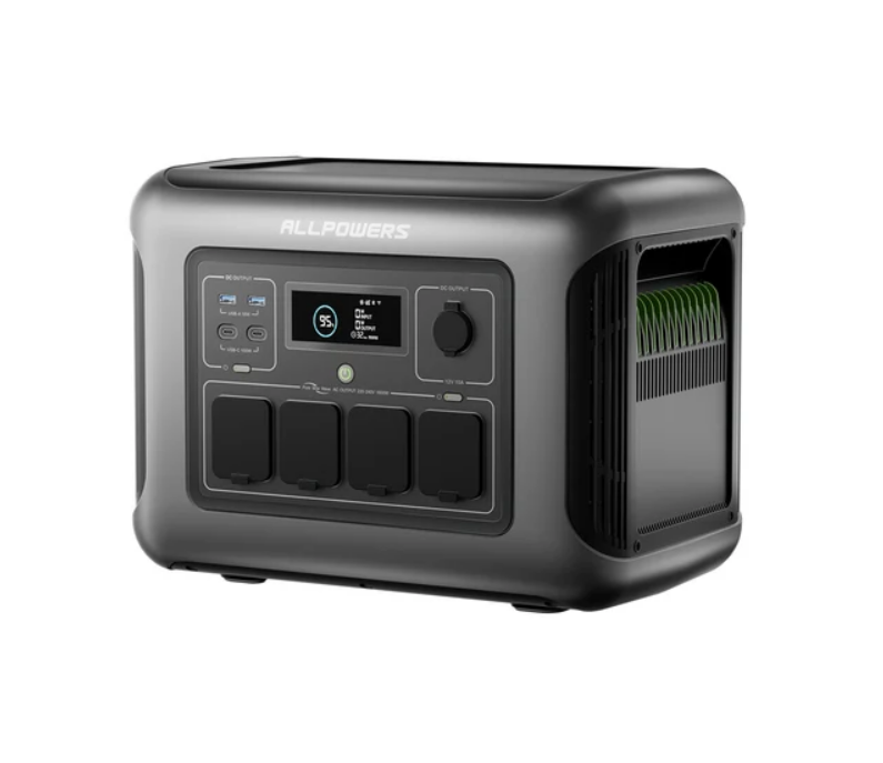 Завершить подборку хочу еще одной интересной моделькой, которая отлично подходит для длительных отключений — ALLPOWERS R1500 LITE. Это модель на LiFePo4 аккумуляторах с ресурсом не менее 3500 циклов и суммарной емкостью 1056 Wh, которая способна выдавать мощность до 1600W (пиковая мощность до 3200W). При этом она умеет очень быстро восполнять энергию: за 50 минут от сети или 1,5 часа от солнечных панелей. Станция очень тихая и даже при работе вентилятора для охлаждения акб, шумность не превышает 35 dB. Информативный экран, куда выводится информация об остаточном заряде, нагрузке и прочих параметрах, дополнен функциональным приложением на смартфон, где удобней производить настройки и мониторить показатели, в том числе дистанционно. Что еще из важного? Чистая синусоида, возможность работы в качестве ИБП (15 миллисекунд на переключение), вес 15 кг.