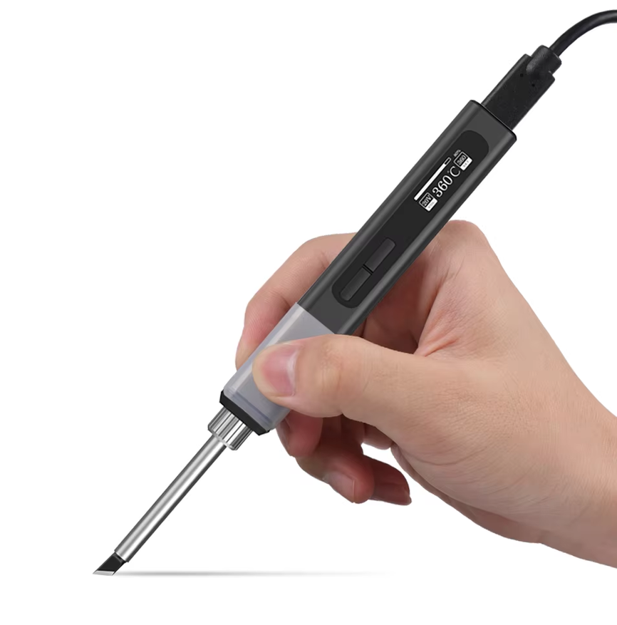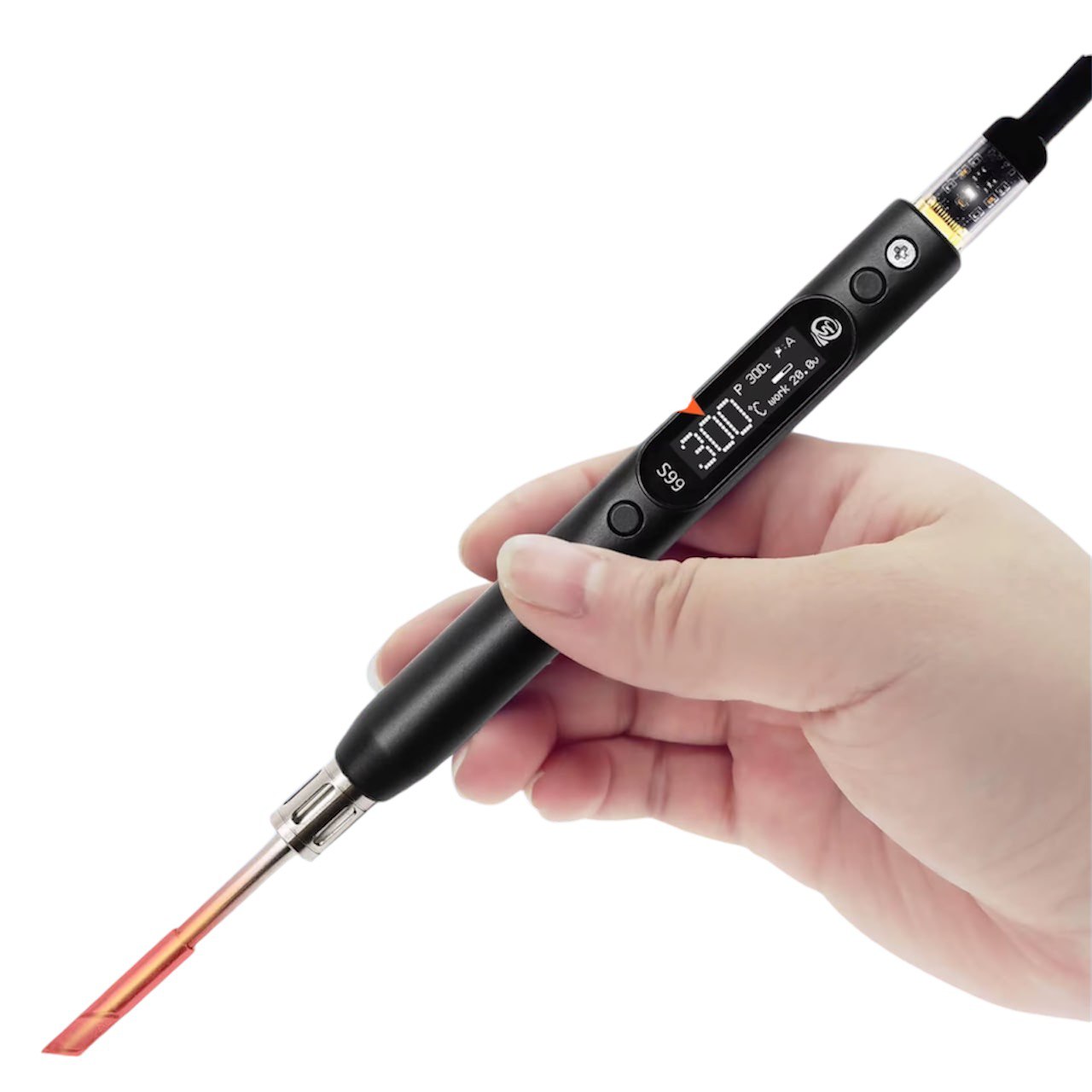 GVDA GD300 — компактный паяльник для пайки с мощностью 65W и нагревом — 8 секунд, его можно использовать для работы с печатными платами, мелкими электронными деталями и проводами. Температурный диапазон 80-420°C позволяет адаптировать его под различные задачи. Устройство поддерживает быструю зарядку через USB Type-C с протоколами PD/QC, оснащено OLED-экраном, 2 кнопками управления и интеллектуальными функциями, такими как автоматический режим сна и поддержание постоянной температуры. OLED экран (0.87 дюйма) отображает рабочие параметры паяльника, что делает процесс пайки более контролируемым. Легкий всего 37 г и компактный размер 111*17*15 мм подойдет для работы в условиях ограниченного пространства и для тех, кто часто находится в движении.