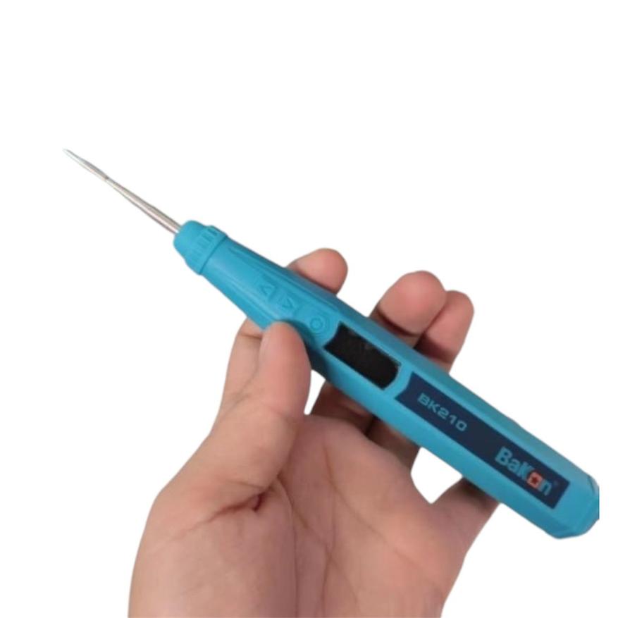 BAKON BK210 — это компактный беспроводной паяльник мощностью 12W с температурным диапазоном 180℃-450℃. Нагревается и плавит припой за 10 секунд, работает до 60 минут на батарее емкостью 3000мАч. Заряжается через USB Type-C приблизительно 2-2,5 часа, имеет автоматический режим сна. Предназначен для тех, кто занимается мелким ремонтом электроники и работает в условиях ограниченного доступа к электросети.