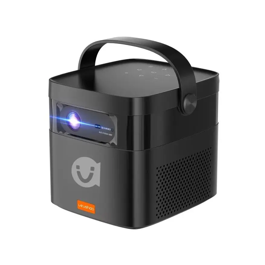 Встроенный аккумулятор ёмкостью 15 000 мАч обеспечивает от 1,5 до 3 часов автономной работы. Это делает V50 удобным решением для выездных презентаций, уличных киносеансов или использования в местах без доступа к розетке. Проектор весит всего 1,28 кг и имеет компактные размеры 146x144x161 мм, а встроенная ручка упрощает транспортировку.