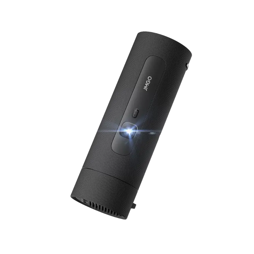Открывает подборку JMGO PicoFlix, который обладает встроенным поворотным механизмом, что позволяет наклонять корпус на 127 градусов без использования штатива. Устройство автоматически корректирует геометрию изображения и фокусировку при изменении угла, что упрощает настройку проекции на стены или потолок.