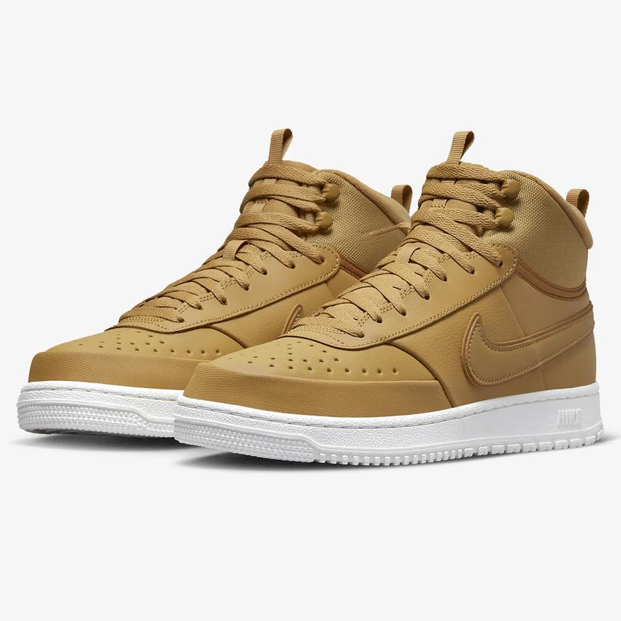 Nike в своей коллекции также имеет пару ботинок, представляющих собой адаптированные для холодного сезона баскетбольные кроссовки в духе 80-х. Верх сделан из натуральной кожи, вместо искусственного меха утепление в Court Vision Mid оформлено в виде утолщенного текстильного «воротника», что заодно улучшает поддержку щиколотки.