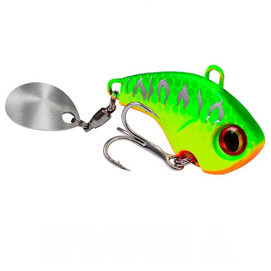 Спиннерная приманка в весе 7,5 г, 12 г и 17,5 г отличается от предыдущей виброблесны Pesca уже по самой механике работы: если там основной эффект строится на вибрации цельного корпуса при проводке и падении, то здесь задействован вращающийся элемент, который создает постоянное движение и блики в воде, то есть приманка не зависит от колебаний корпуса. По сути это возврат к классической схеме с вращением, но в более компактном исполнении и с разбросом по весам, что позволяет варьировать глубину и скорость проводки, при этом она не требует ступенчатой анимации, как виброблесна, и работает на равномерном ведении, сохраняя стабильную игру за счет вращающегося элемента.