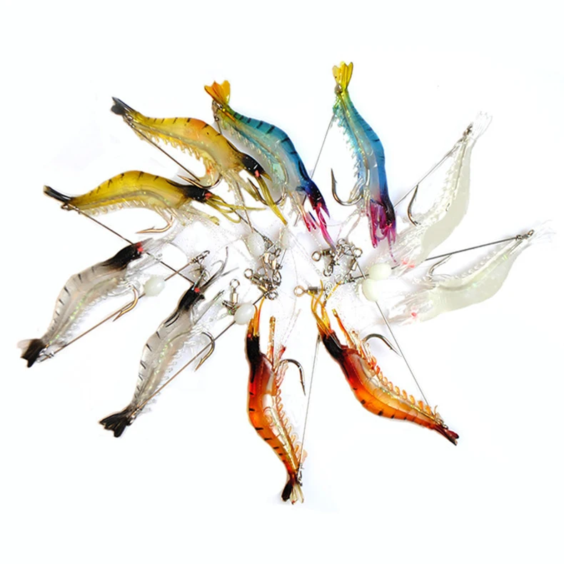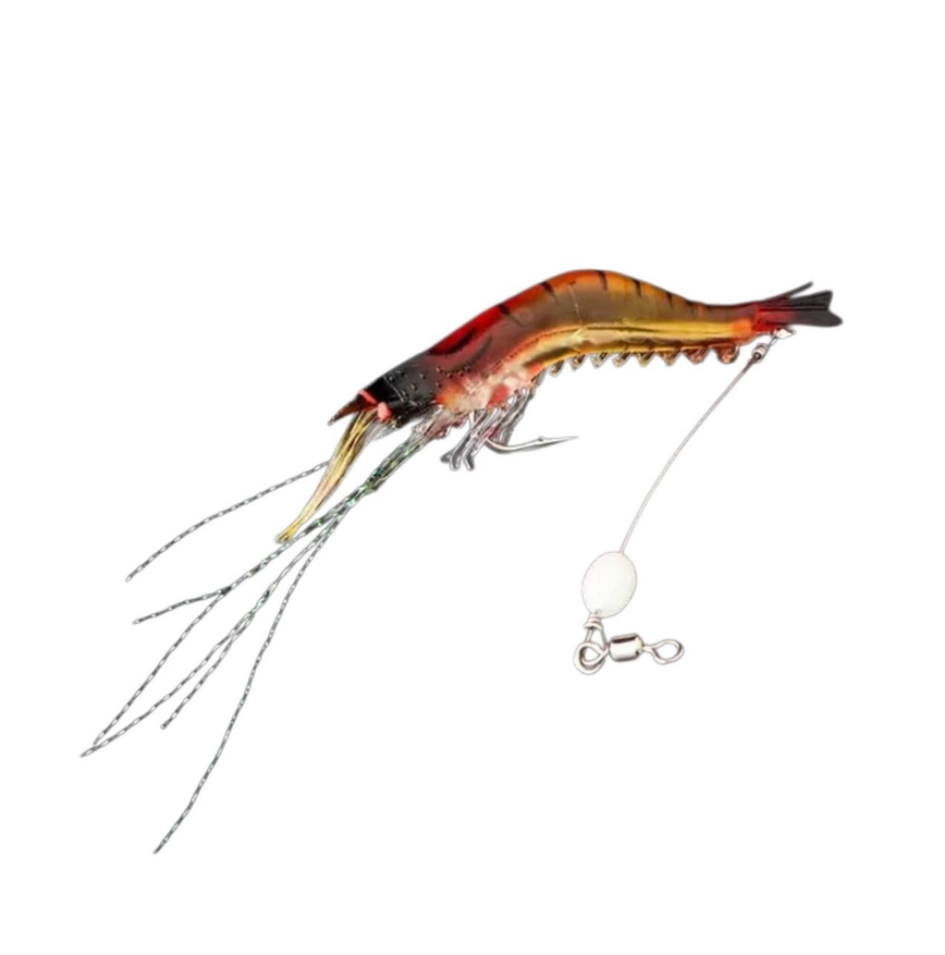 Светящаяся мягкая приманка-креветка длиной 75 мм и весом 5,5 г заметно отличается от предыдущей спиннерной приманки FTK по конструкции и поведению в воде: если спиннер работает за счет вращающегося элемента и рассчитан на равномерную проводку с постоянными бликами, то здесь используется мягкий силиконовый корпус без подвижных металлических частей, а игра формируется за счет формы и гибкости материала, имитирующего движение креветки. При этом рабочий диапазон ограничен глубиной до 2 метров, и акцент сделан на более естественное поведение в воде, тогда как спиннер ориентирован на активное привлечение за счет механического движения и отражений.