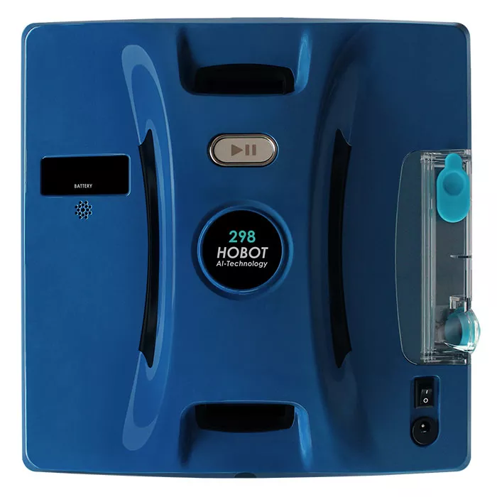 HOBOT 298 — квадратный робот-мойщик окон с функциями автоматического определения края очищаемой поверхности за счет инновационной функции распыления жидкости на поверхность стекла с использованием ультразвуковой мембраны. Скорость очистки: 4 м²/мин, емкость для воды: 50 мл, уровень шума: менее 64 дБ.