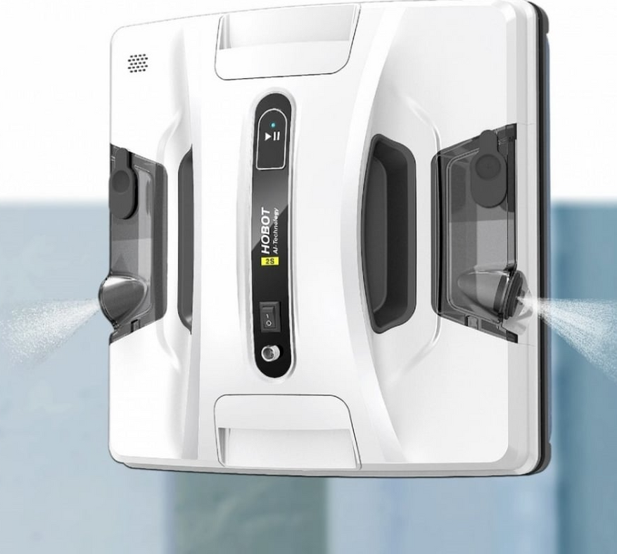 HOBOT-2S Ultrasonic — еще один квадратный робот с возможностью распыления жидкости на стекло в двух направлениях, превращая её в густой туман во время уборки. Такое решение позволяет растворять пыль и не оставлять разводов. Отлично подходит для больших окон, витрин или панорамного остекления на более чем 5х5 метра. Может управляться с помощью пульта ДУ или смартфона на системе iOS или Android. Скорость очистки — 2,4 мин./1 м2.