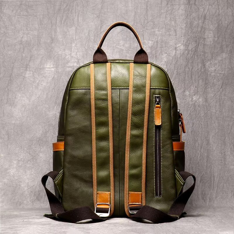 Рюкзак Leathfocus в официальном магазине на Алиэкспресс доступен в черном цвете и в двух оттенках зеленого. Все варианты имеют акцентные бежевые вставки.