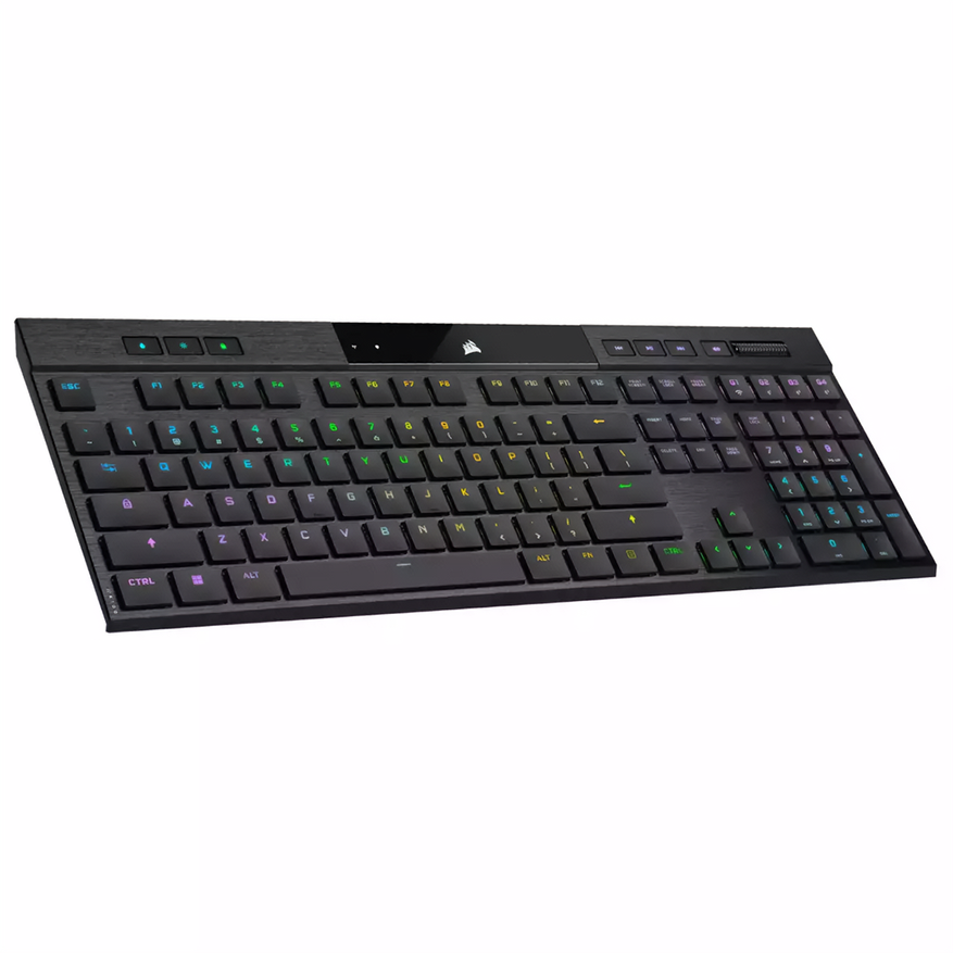 Для тех игроков, кто предпочитает низкопрофильные клавиатуры ножничного типа, в закромах у Corsair приготовлена клавиатура Corsair K100 AIR c переключателями Cherry MX Ultra LP Tactile. Данная модель может работать по проводу, по радиоканалу или по Bluetooth 4.2. Минимальное время отклика на уровне 0.8 мс достигается в проводном режиме при частоте опроса в 8000 Гц.