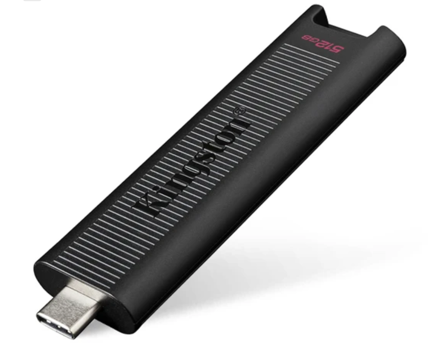 Второе место занимает флешка от фирмы Kingston. Тут используется такой же чип памяти, как и в предыдущем варианте. Еще можно выбрать вариант между Type-C и Type-A разъемом, в зависимости от того, какой нужен именно вам. Минимальный объем памяти 256 ГБ и максимум 1 ТБ. В зависимости от выбранного варианта будет разной и расцветка накопителя, черный или бардовый. Стоит отметить, что флешка не миниатюрная, поэтому может мешать соседним разъемам на ноутбуке. Скорости около 1000 МБ/с.