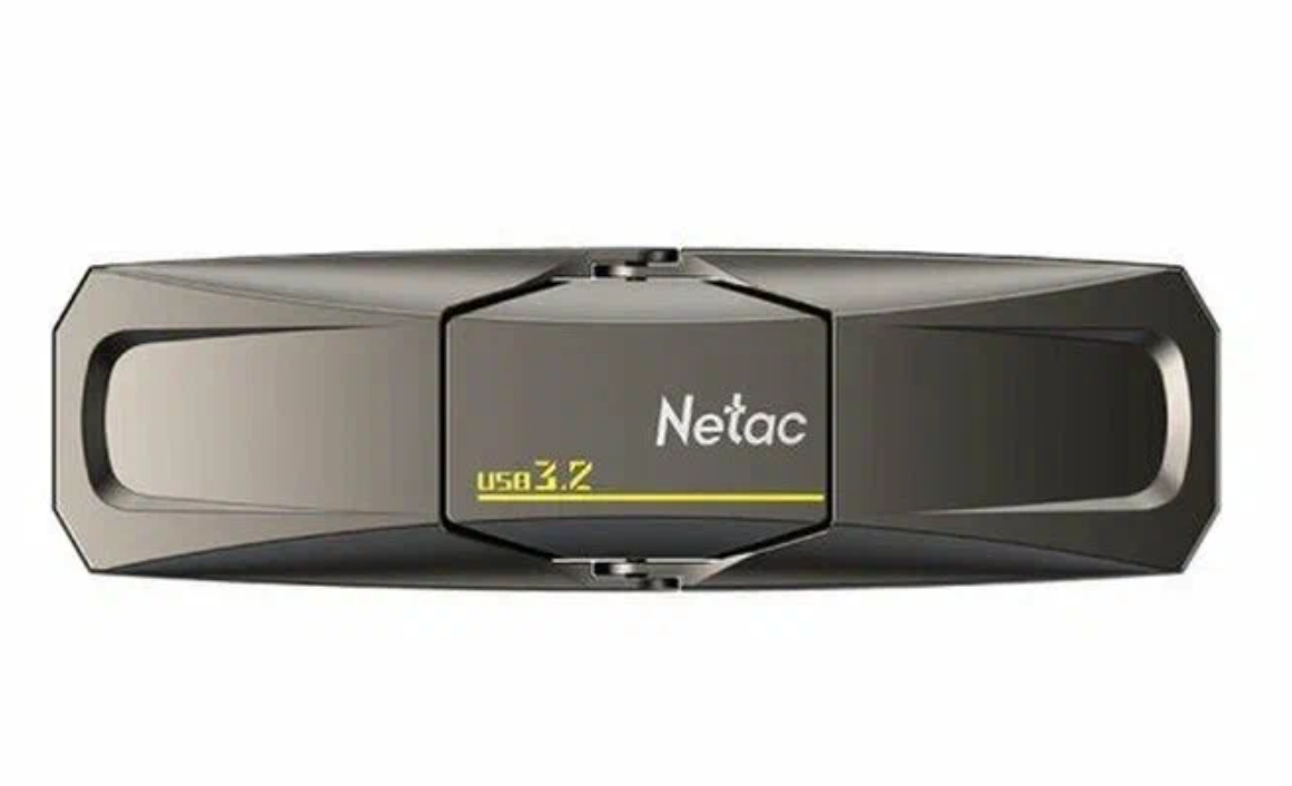 Китайская компания Netaс выпускает накопители уже очень давно. Эта модель выделяется этаким футуристичным корпусом, когда двухсторонние интерфейсы USB-A и USB-C прикрываются поднимаемыми как капот у автомобиля крышками. Емкость доступна до 512 ГБ, корпус из металла. Крышки крепко фиксируются и кто-то использует её как антистресс игрушку. Скорости в обе стороны доходят до 500 МБ/с. Странно, но на Я. маркете нашлась такая флешка дешевле, чем на Aliexpress.