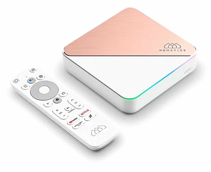 Это мощная модель для ценителей производительности, высокого качество изображения и удобства использования. Её стильный корпус с металлической вставкой и фирменным логотипом Homatics выглядит солидно, а компактные габариты 159x110x29 мм позволяют легко разместить устройство рядом с телевизором.