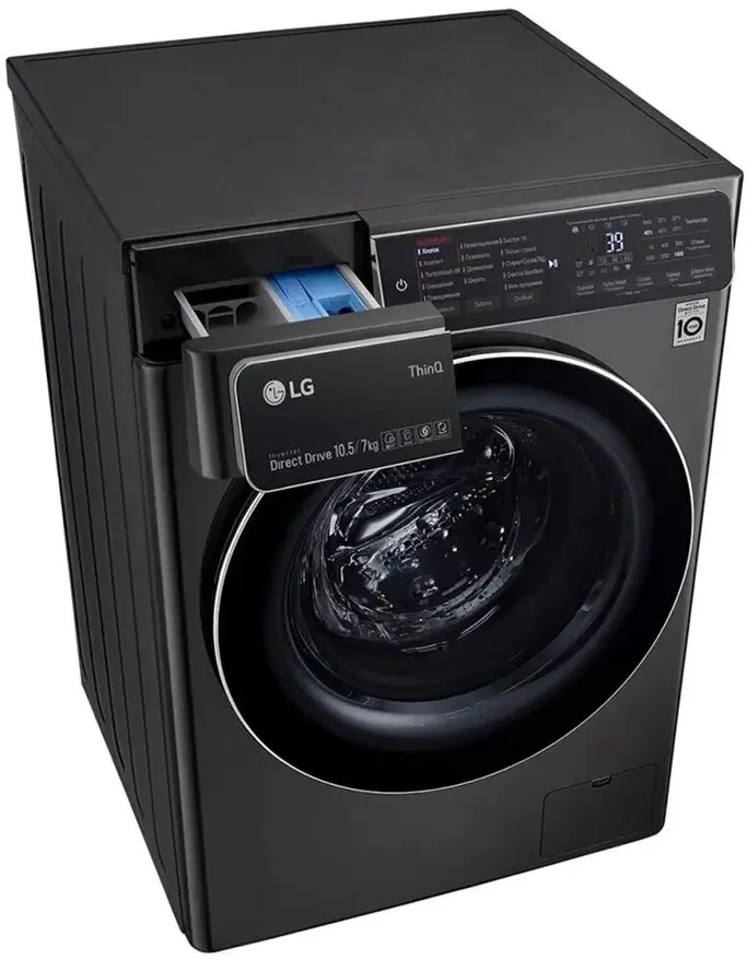 Далее идут стирально-сушильные машины из линейки LG AI DD, которые способны не только определять вес загружаемых вещей, но и тип ткани. В зависимости от этих факторов стиральные машины LG AI DD самостоятельно выбирают оптимальный режим работы. Также они поддерживают интеграцию в систему умного дома LG ThinQ Smart Home. К преимуществам можно отнести режим высокотемпературной стирки 95 °С.