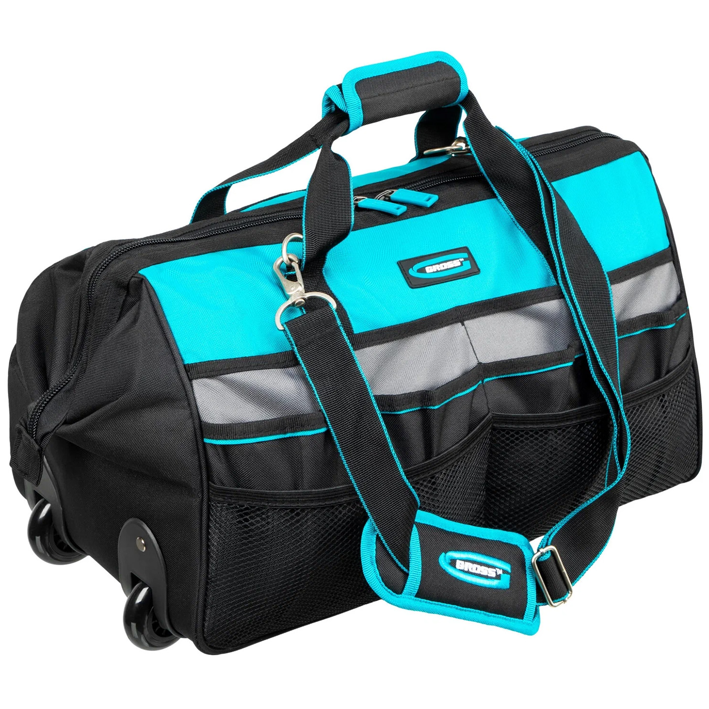 Но главная инновация Gross D — способ её перемещения. Инженеры подошли к вопросу транспортировки тяжелой сумки с истинно немецкой практичностью: они банально снабдили её колёсиками и выдвижной ручкой, как у чемодана. Теперь вы можете легко катить свой «инструментальный чемодан» по ровной поверхности, переходя на использование плечевого ремня только при необходимости. Это революционное решение особенно оценят те, кто регулярно перемещается между объектами с большим количеством тяжелого инструмента.
