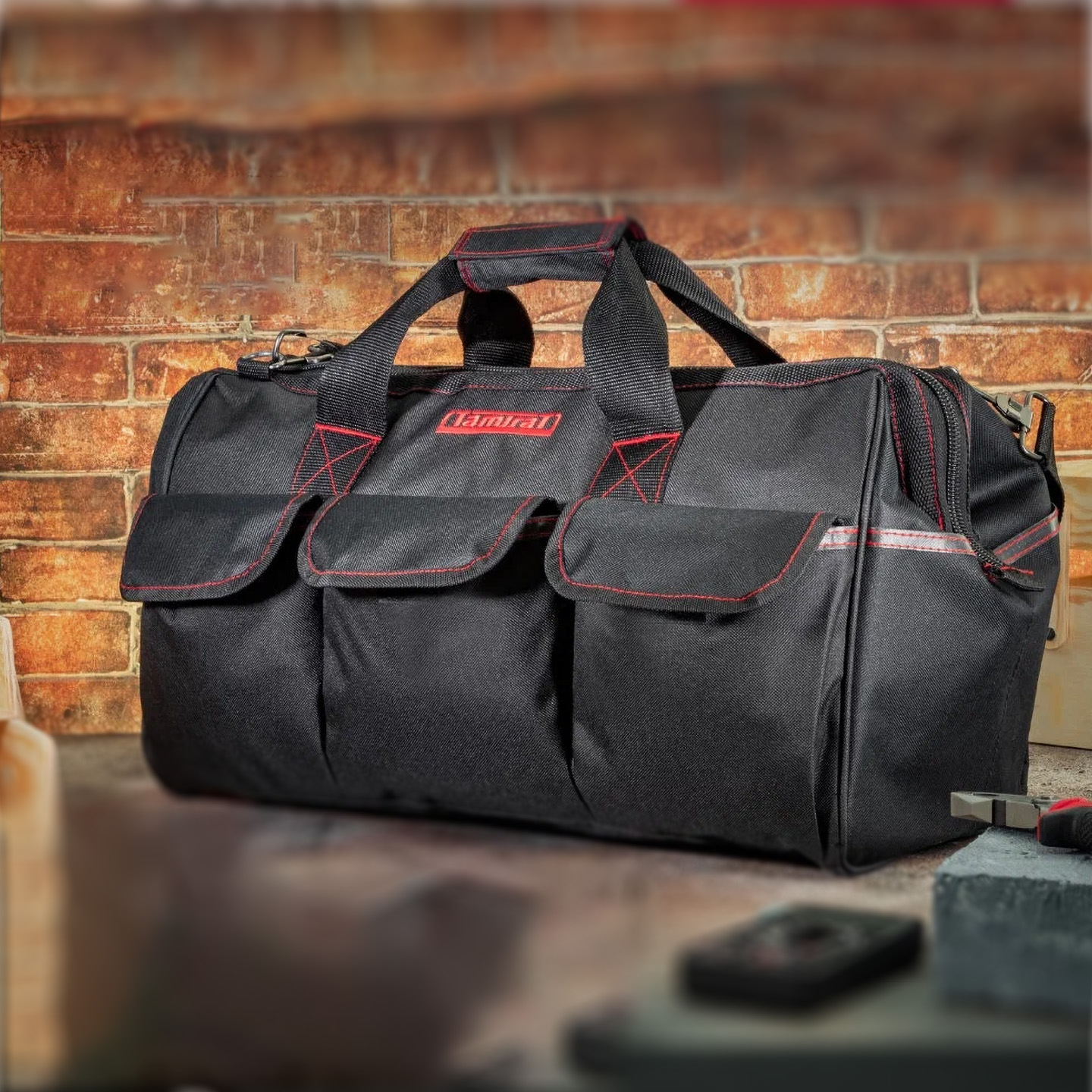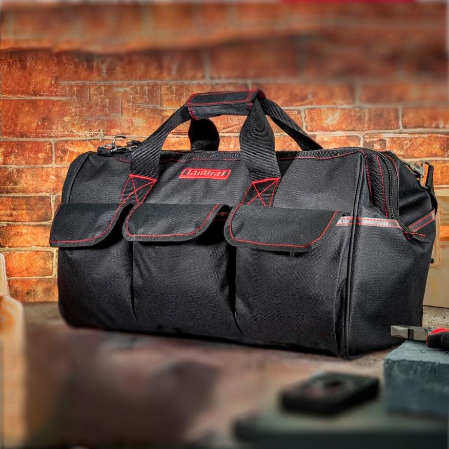 Несмотря на внушительные габариты, Tamirat остается удобной в использовании благодаря прилагаемому ремню для переноски. Особого внимания заслуживает материал изготовления: износостойкая синтетическая ткань с ПВХ-пропиткой не только защищает содержимое от влаги, но и значительно продлевает срок службы самой сумки. В Tamirat легко поместится набор электроинструментов вместе с аккумуляторами, зарядными устройствами и всеми необходимыми аксессуарами. Это отличный выбор для профессиональных мастеров или энтузиастов, которым нужно перевозить большое, но не запредельное количество инструментов.
