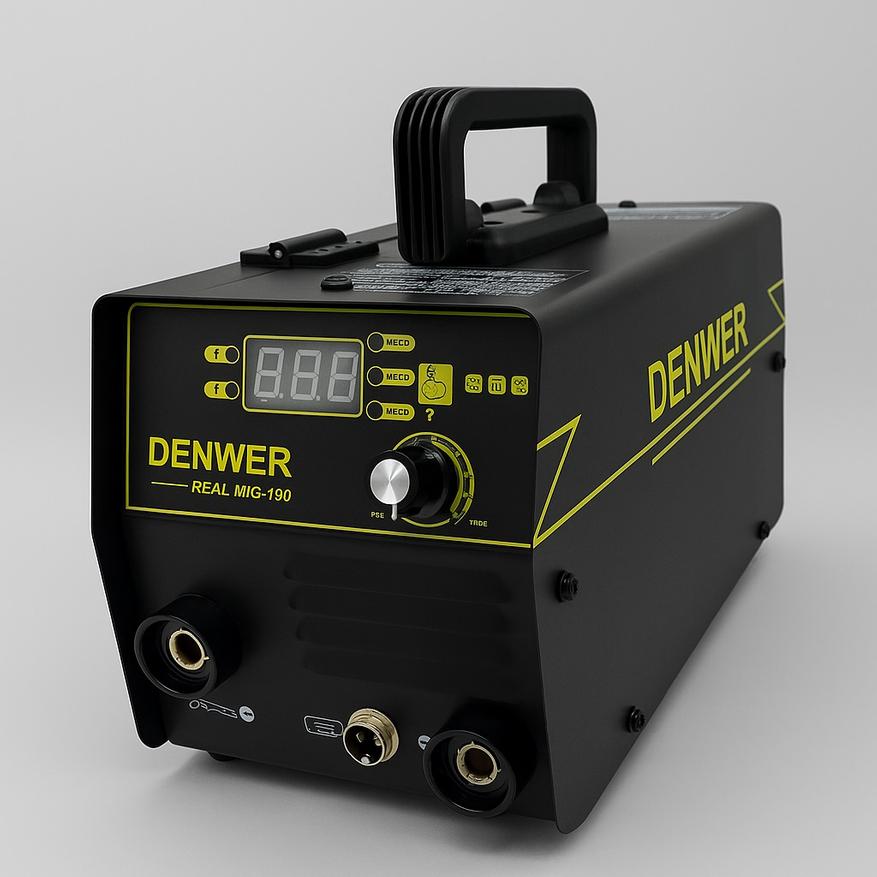Теперь речь пойдёт о более мощном полуавтомате, который неплохо справляется с низкоуглеродистой и нержавеющей сталью. Поддерживает режимы сварки MIG и MMA до 190 А. Система интеллектуального управления стабилизирует дугу и обеспечивает формирование ровного, качественного шва при продолжительной работе. За безопасность отвечает встроенная защита от перегрузок и короткого замыкания, а продуманная система подачи газа и надёжный механизм протяжки проволоки создают условия для уверенного контроля над сваркой. В целом можно сказать, что аппарат с лёгкостью справляется как с тонким металлом, так и с более массивными деталями.