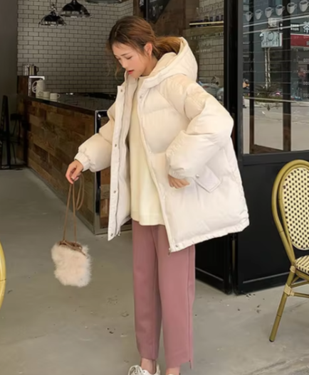 Женская зимняя куртка с капюшоном с подкладкой из искусственного меха, свободного кроя. Куртка застегивается на молнию. Она удобная, материал приятен на ощупь, а воротник обеспечивает дополнительный комфорт. Замок работает исправно. Куртка достаточно теплая, подойдет для температур до -20°C. Подклад закрывает область спины, хотя не полностью. Единственный минус — немного короткие рукава, но проблему можно решить с помощью перчаток.