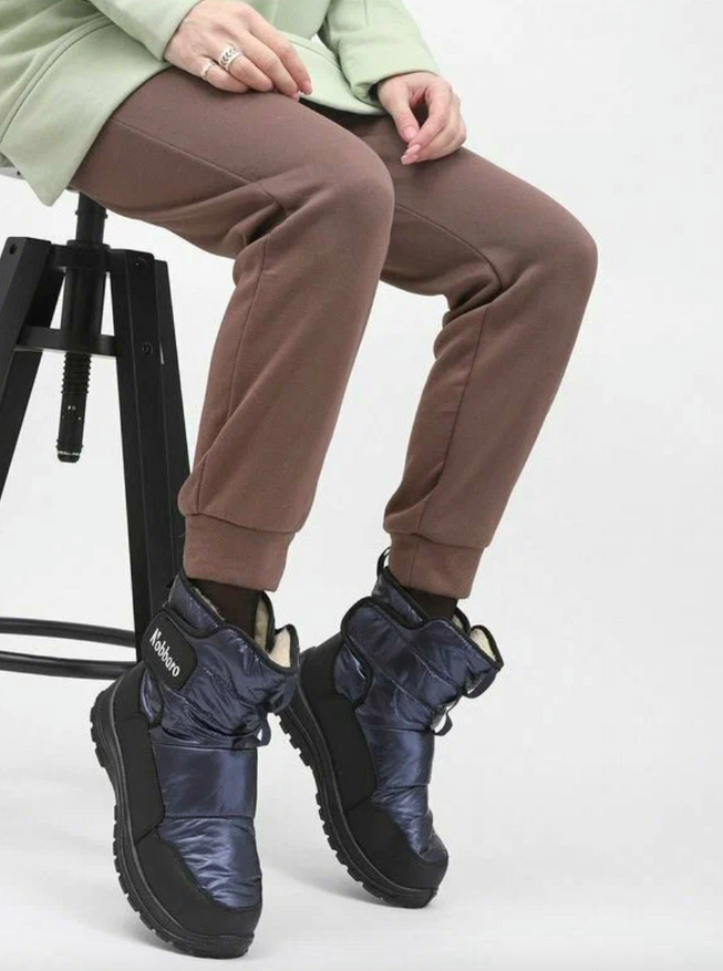 Верх выполнен из современного синтетического материала с добавлением полиэстера. Он не пропускает влагу и устойчив к износу, что особенно важно зимой, когда вокруг слякоть и мокрый снег. Подкладка из мягкого искусственного меха отлично сохраняет тепло и создаёт уют на весь день. Лёгкая стелька из ЭВА приятно амортизирует, так что ноги не устают даже при длительных прогулках.