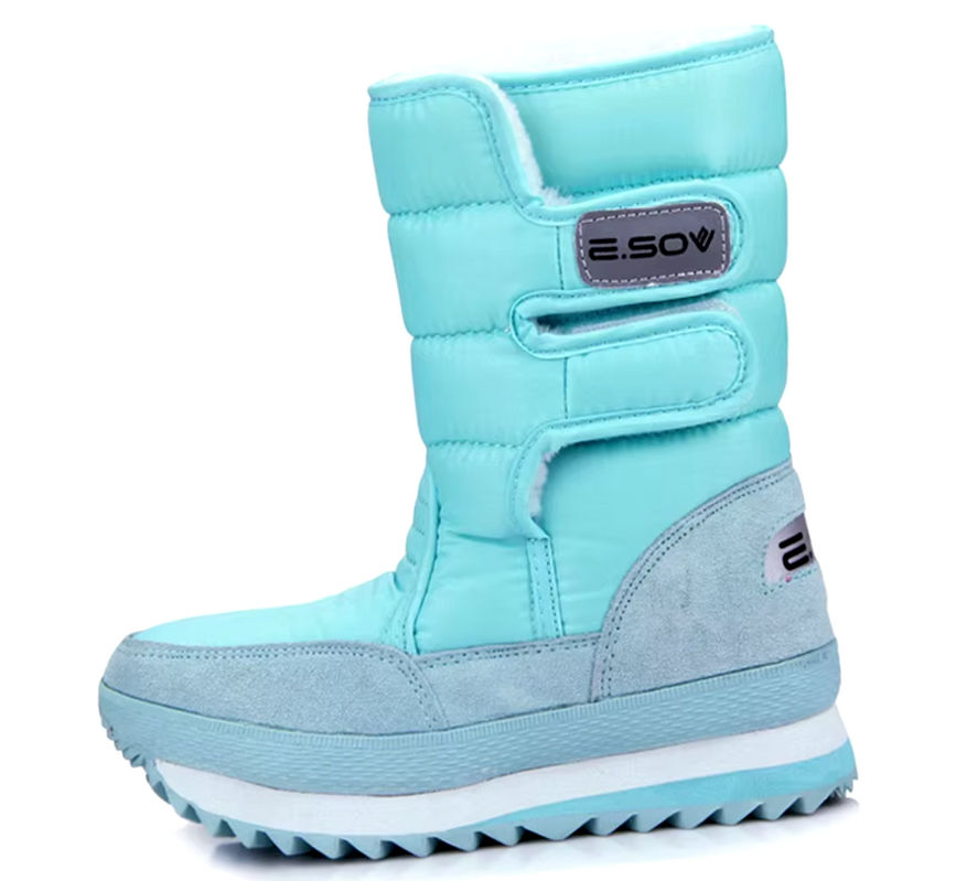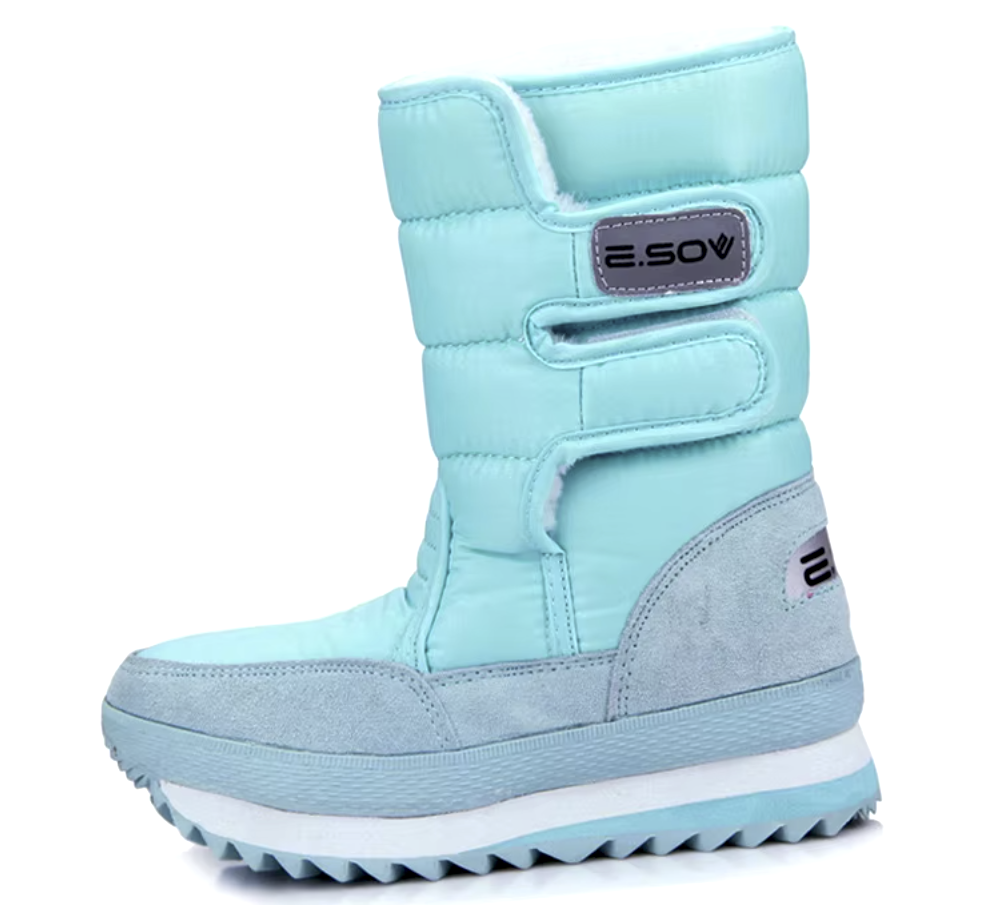 Верх выполнен из эластичного текстиля и нейлона, устойчивого к влаге и морозу. Подкладка изготовлена из искусственного короткого плюша, который сохраняет тепло и создаёт приятный микроклимат внутри обуви. Высота сапог до середины голени обеспечивает дополнительную защиту от снега и ветра.