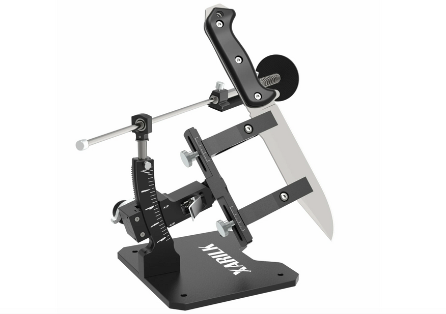 Зажим регулируется по ширине и позволяет фиксировать клинки разной толщины. Поддерживаются кухонные, складные, охотничьи и филейные ножи, а также ножницы и твёрдые материалы.