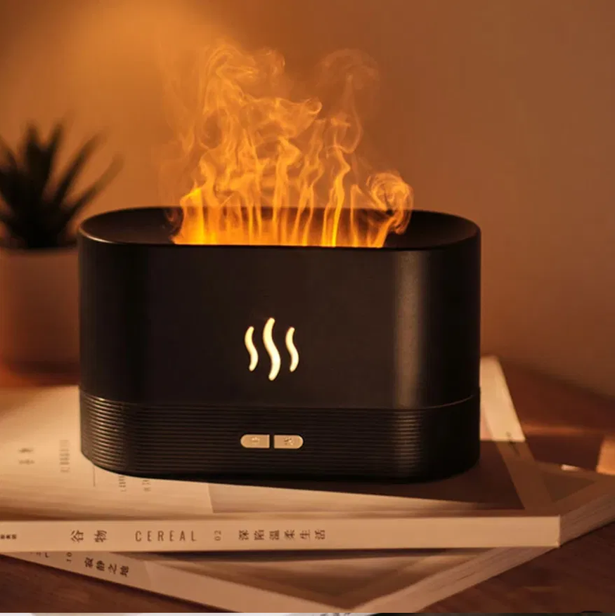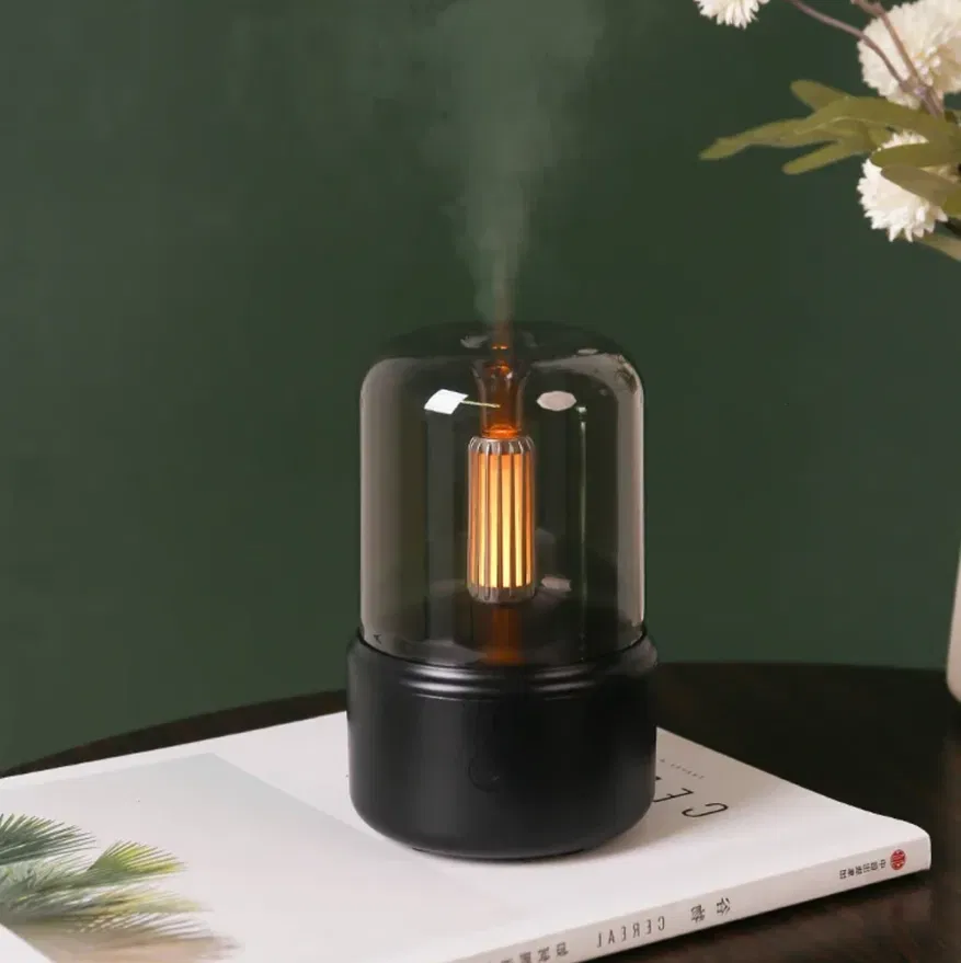 Компактный ультразвуковой увлажнитель с функцией ароматерапии и визуальным эффектом «пламени». Работает от USB 5В (рекомендуется адаптер 5В 2А), мощность 5Вт. Объём резервуара — 180 мл, расход воды до 20 мл/ч, время работы до 12 часов. Уровень шума — ниже 36 дБ.