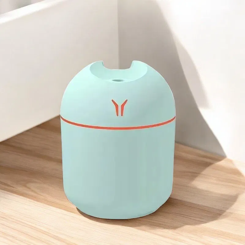 Миниатюрный увлажнитель с резервуаром 250 мл, питанием от USB (5В, 1Вт) и уровнем шума менее 36 дБ. Рассчитан на помещения до 10 м². Расход влаги около 40 мл/ч, непрерывная работа до 10 часов. Поддерживает ароматерапию, оснащён автоматическим отключением при низком уровне воды.
